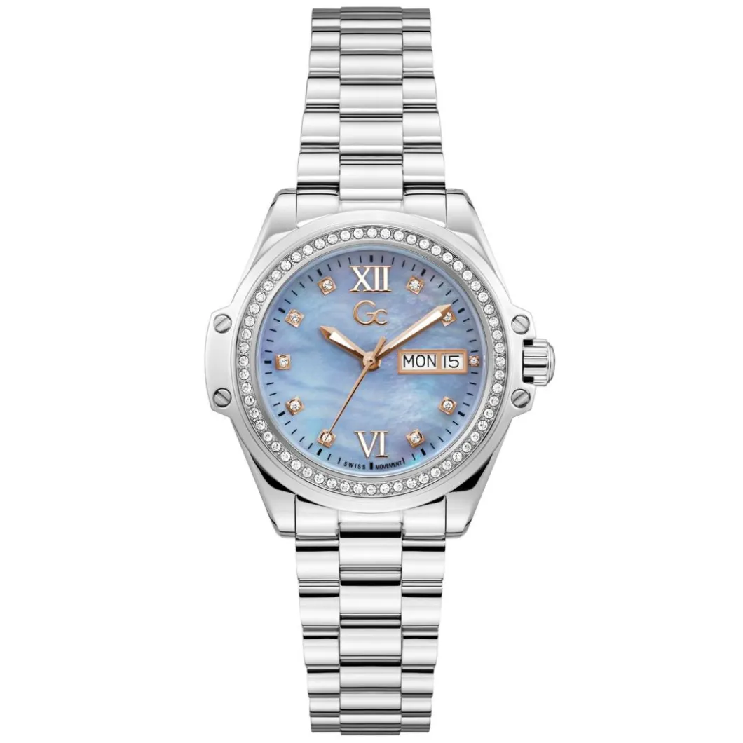 La Montre Femme GC Gc Bolt Lady – Z53003L7 de marque GC est un véritable bijou pour vos poignets. Le boîtier rond de couleur argent en acier accentue sa robustesse et sa finesse. Elle se caractérise par un affichage analogique clair et un bracelet en acier de couleur argent qui offre une élégance intemporelle. Elle est équipée d’un mouvement à quartz et d’un dateur pour votre confort quotidien. Sa forme rond offre une esthétique classique tandis que son étanchéité jusqu’à 100m (10 ATM) en fait un choix idéal pour les activités aquatiques. La montre se ferme par une boucle déployante pour une sécurité optimale. Le verre minéral qui la recouvre offre une excellente protection contre les rayures et les impacts.