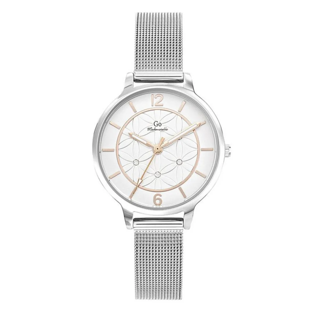 La Montre Femme Go Mademoiselle Fleurs Et Papillions – 695596 Bracelet Argent est un bijou féminin élégant par la célèbre marque Go Mademoiselle. Ce magnifique garde-temps affiche un cadran analogique enchâssé dans un boîtier rond de 32 mm, en acier couleur argent. Le bracelet est également de couleur argent, se refermant aisément grâce à sa boucle simple. Cette montre est propulsée par un mouvement à quartz et est protégée par un verre minéral. Elle est égayée par un motif délicat de fleurs et de papillons, lui conférant un éclat de joie et de charisme. Avec une étanchéité de 30 mètres, elle résiste à des pressions inattendues.