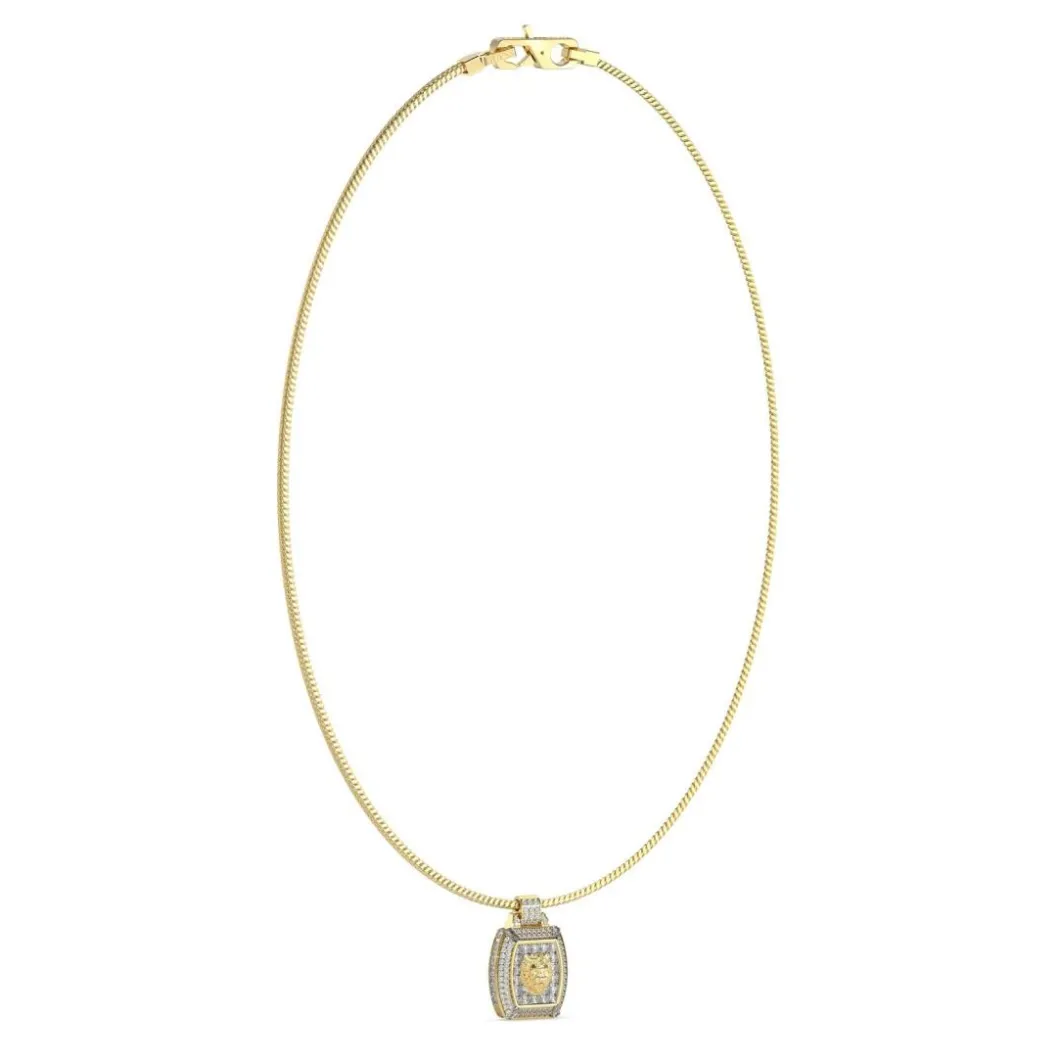 Voici une pièce unique qui attirera sans aucun doute l’attention : le Collier Homme Guess Bijoux Lion King JUMN05001JWYG. De couleur Doré, ce bijou est composé d’acier, lui conférant robustesse et finesse. Il s’agit d’un collier avec un pendentif représentant la figure majestueuse d’un lion, symbole de pouvoir et de grandeur. Sa beauté exceptionnelle est mise en valeur par des détails finement travaillés, précurseurs du savoir-faire de la marque. Un accessoire de mode formidable pour les hommes qui souhaitent affirmer leur style. En revanche, le collier est dépourvu de chiffres romains, mettant en exergue un look pur et moderne. Ce joyau apportera une touche luxueuse à n’importe quelle tenue.