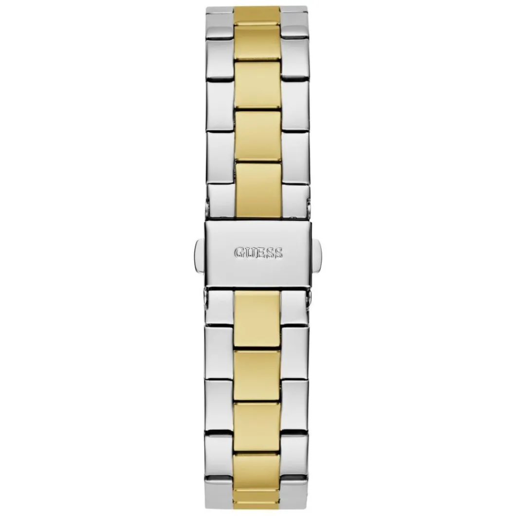 Cette élégante montre femme Guess Fawn – GW0686L2 compte avec un bracelet en acier de couleur bicolore. Son boîtier admet une taille de 32mm et une silhouette ronde, venant compléter un design séduisant. Le mouvement est aliménté au quartz, garantissant une précision irréprochable. L’affichage est de type analogique, clair et facile à lire. Cette montre Guess est généreusement étanche jusqu’à 30 m. En prime, elle aurait une boucle déployante comme moyen de fermeture et un verre de type minéral pour une résistance extraordinaire aux rayures et chocs.