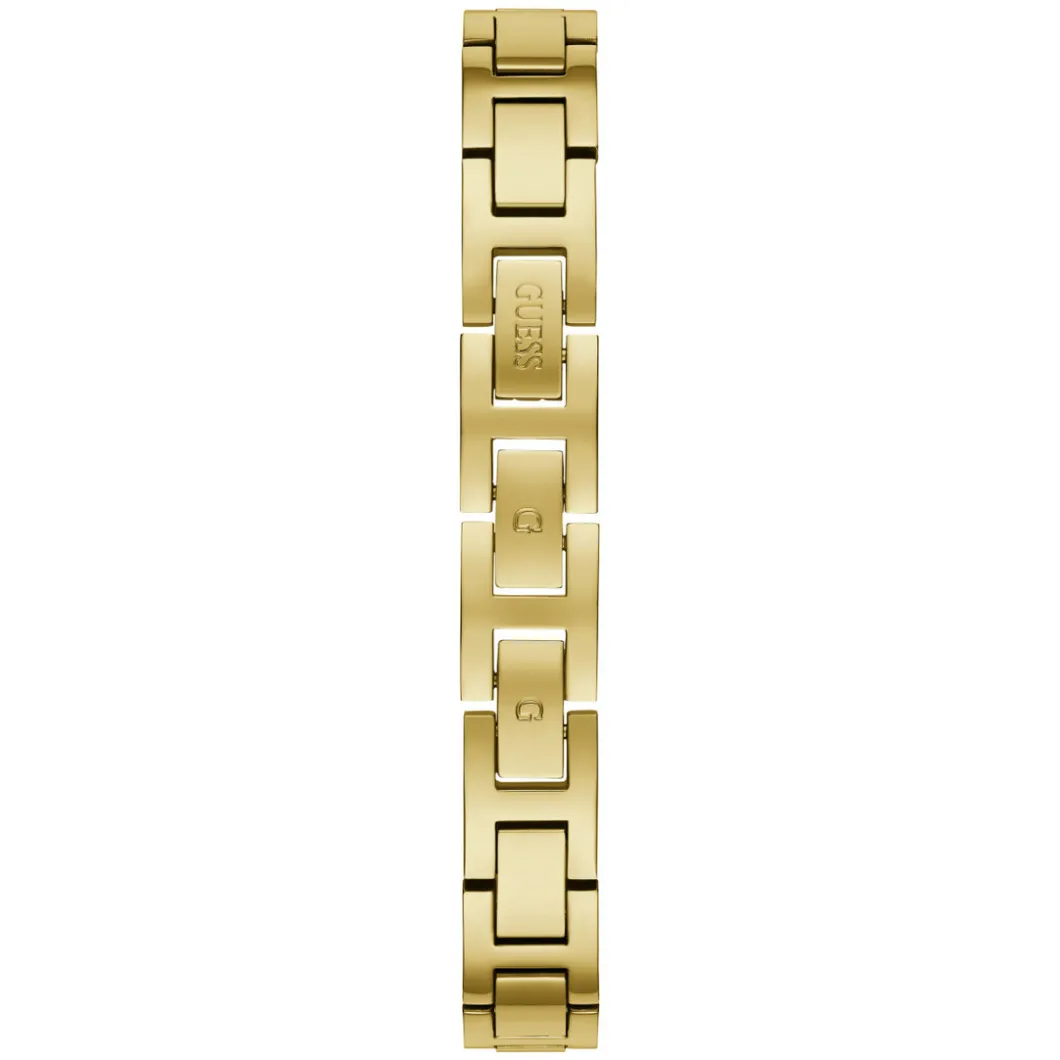 Le bracelet fait un rappel au boîtier et est en acier doré brillant argenté avec boucle déployante équipée du système G-Link.