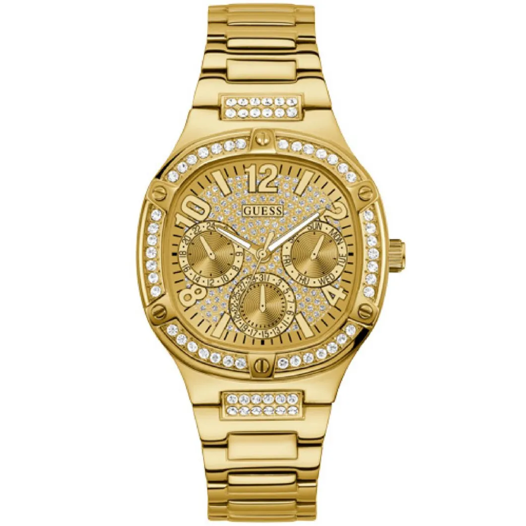 Ne résistez pas au charme de cette Montre pour femme Duchess GW0558L2 avec bracelet en acier doré. Brillante, elle attire les regards avec son boîtier recouvert de pierres fines étincelantes et sa teinte or tendance. Chic, elle se porte aussi bien au quotidien que lors de grandes occasions.