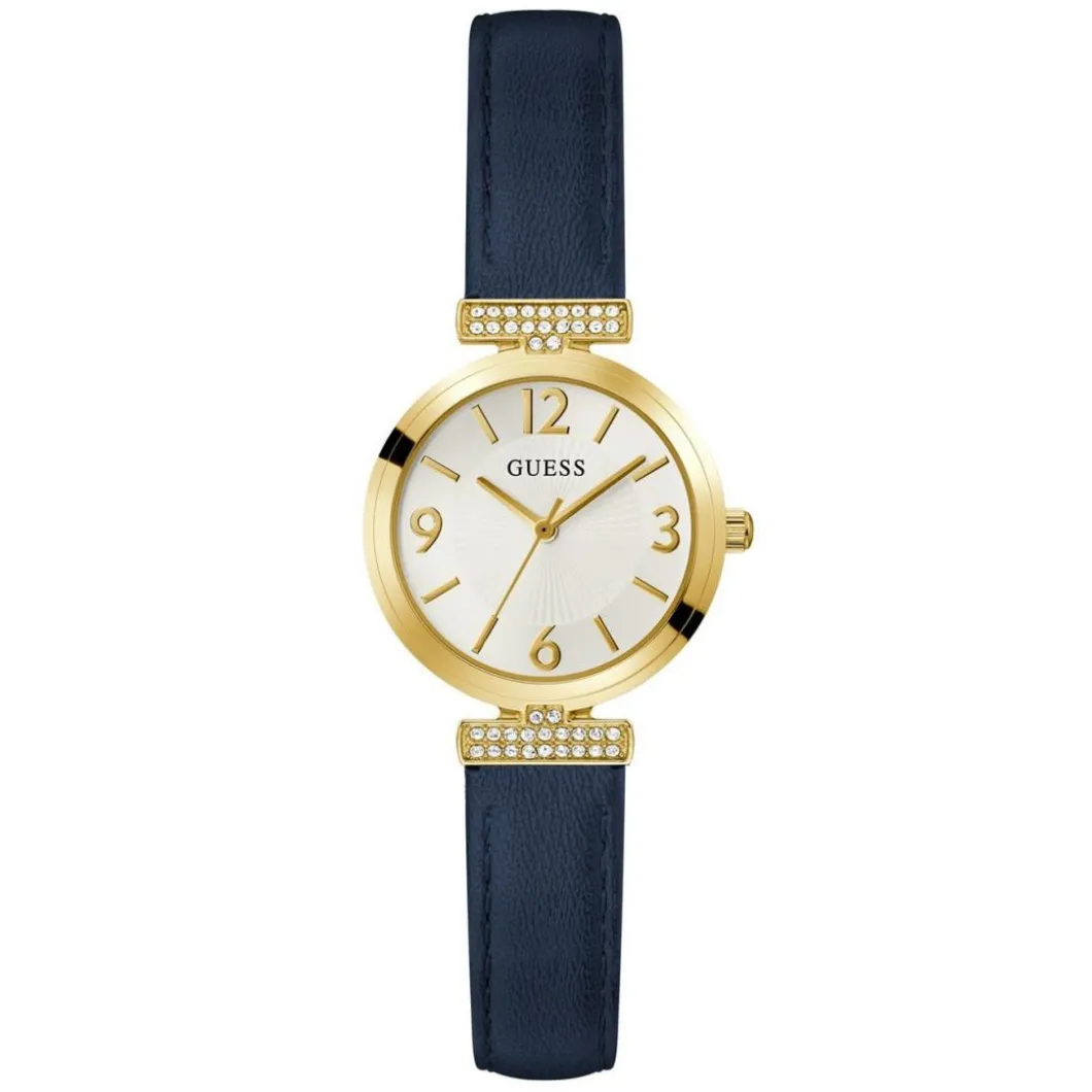Découvrez la Montre Femme Guess Array – GW0614L5, associant un élégant bracelet en cuir bleu à un boîtier rond doré en acier. Cette montre de marque Guess est animée par un mouvement Quartz et affiche l’heure de manière analogique. La couleur du bracelet se marie parfaitement avec le boîtier doré, conférant à cette montre un look chic et sophistiqué. Son diamètre de 28 mm en fait une montre discrète et facile à porter en toute occasion. Son verre minéral garantit une résistance accrue aux éventuels chocs. Cette montre, de type classique, possède une boucle simple pour une fermeture facile et sécurisée. Sa résistance à l’eau est de 10 m (1 ATM), permettant une utilisation quotidienne sans crainte des éclaboussures.