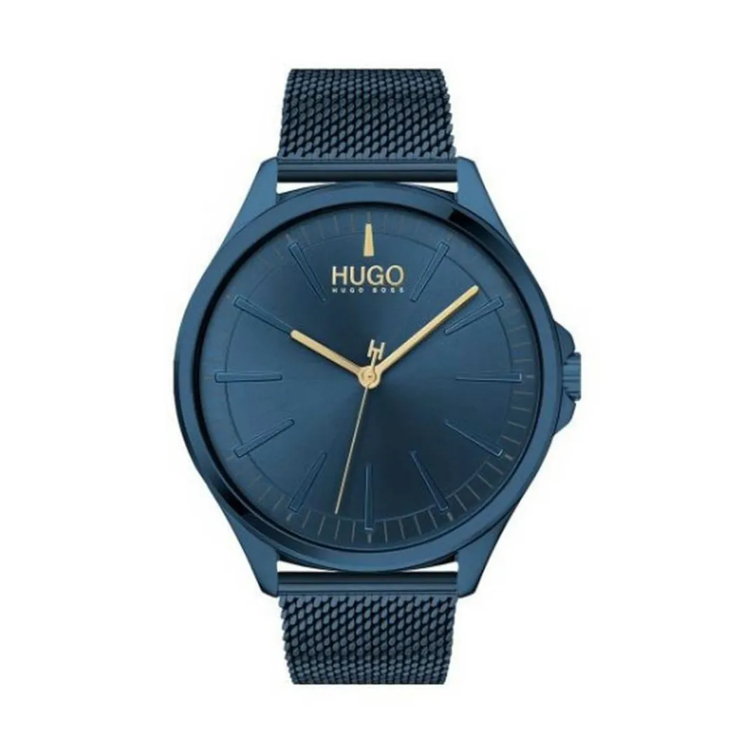 La Montre HUGO 1530136 de la collection SMASH séduira surement ceux qui aiment le style classique et épuré. Elle présente un cadran bleu assorti à son bracelet maille milanaise de la même couleur qui souligne sa masculinité. Le tout est rehaussé par ses aiguilles et son index aux tons dorés qui rajoute de l’éclat à ce ravissant garde-temps. Les initiales de la marque se présentent dans le cadran, au dos et sur le fermoir ce qui en fait un modèle authentique.