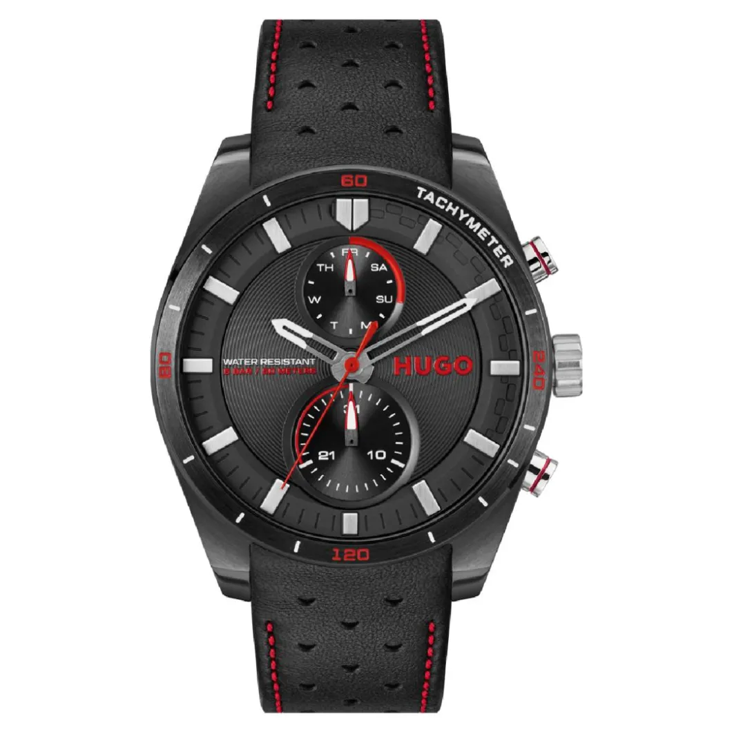 Découvrez le style sophistiqué de la montre homme Hugo #Fast 1530370. Un luxe incarné dans l’allure brute du noir de son bracelet en cuir, du boîtier rond et du cadran. Le boîtier en acier de 44 mm révèle une finition minutieuse avec un verre minéral résistant. Son affichage analogique et multifonctions apporte une fonctionnalité accrue, tandis que le mouvement à quartz assure une précision de l’heure irréprochable. Cette montre pour homme résiste à l’eau jusqu’à 30 mètres et se ferme facilement grâce à une boucle simple. Optez pour l’élégance discrète avec cette pièce intemporelle de l’iconique marque Hugo.