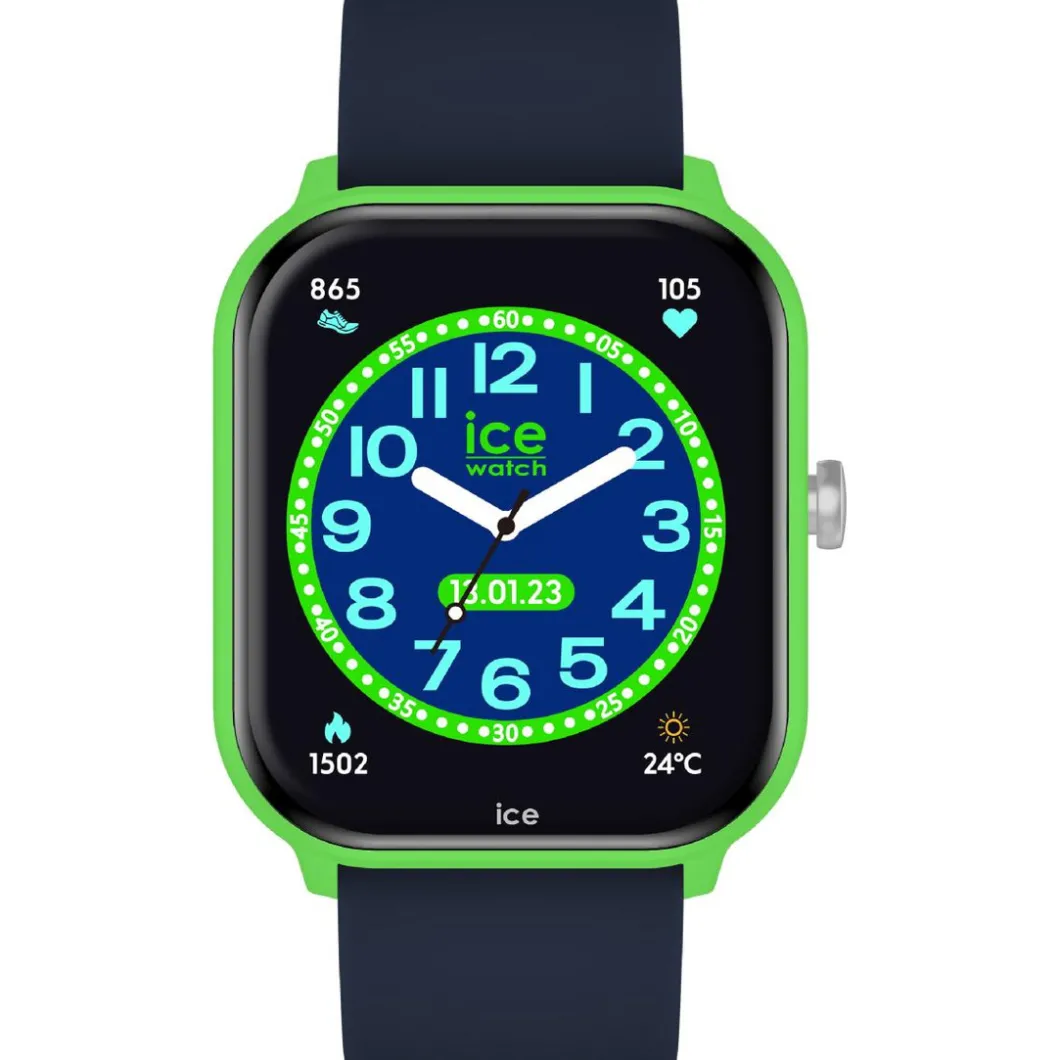 Le modèle ICE smart junior 2.0 – Green – Blue – 1.75 est une montre connectée pour garçon Ice-Watch. Son boitier rectangulaire et vert est en plastique, d’un diamètre de 36mm. Son bracelet bleu est en silicone. L’affichage digital de cette montre se fait à travers un verre minéral. Étanche à l’indice IP68, elle est propulsée par un mouvement à quartz. Un produit de qualité qui allie parfaitement technologie et design.