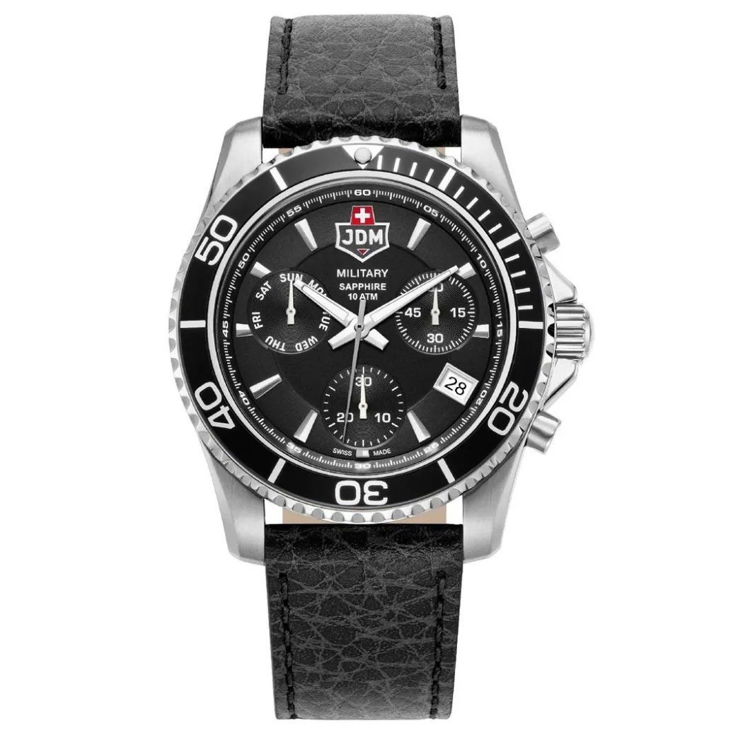 Découvrez la Montre Homme JDM Military Sierra Chrono – un produit de la catégorie Montre Homme, qui offre une combinaison parfaite d’élégance et de fonctionnalité. Dotée d’un boitier en acier de couleur argent, elle arbore un bracelet en acier de couleur Noir. Avec un diamètre de boitier de 43 mm, son étanchéité va jusqu’à 100 m (10 ATM). Elle dispose d’un mouvement quartz et d’un chronographe. Sa forme de boitier est ronde avec un verre en saphir. Le fermoir est une simple boucle.