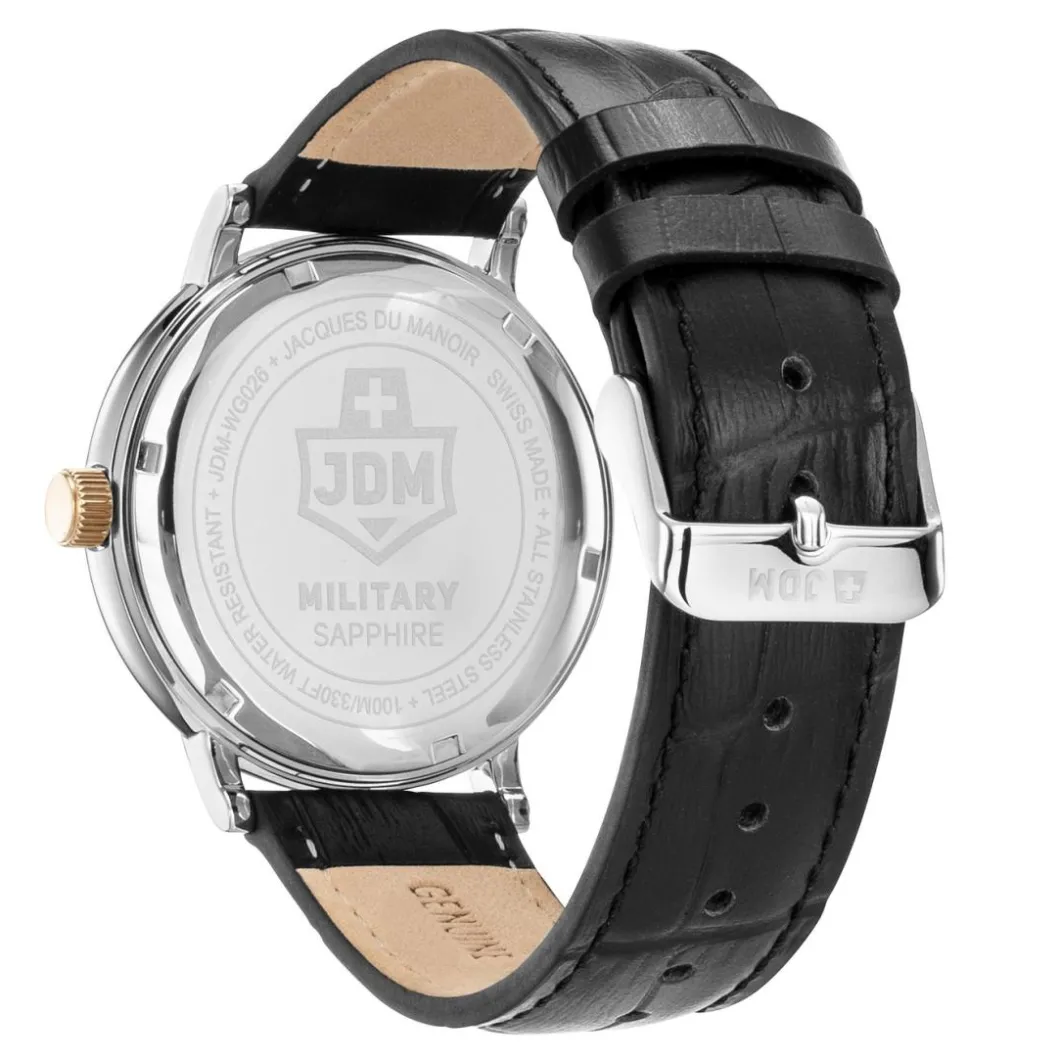 D’une robustesse affirmée, cette Montre Homme JDM MILITARY Kilo – JDM-WG026-05 se voit dotée d’un bracelet en cuir noir, résistant, pour une allure résolument masculine. Son boîtier rond de 40 mm de diamètre en acier argenté encercle un cadran noir et argent affichant l’heure de manière analogique. Les aiguilles se démarquent par leur blancheur tout en sobriété. La montre est d’une étanchéité remarquable de 100m (10ATM) grâce à son boîtier en acier. Elle est actionnée par un mouvement Quartz, gage de son efficacité. La fermeture s’opère par une boucle simple et l’écran en verre minéral assure une protection optimale du cadran.