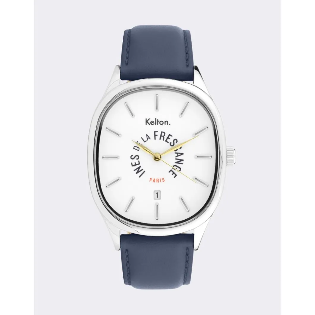 La Montre Femme Grande Colorama Kelton x Ines de la Fressange Paris – 9125462 Navy de la marque Kelton définit l’élégance avec une touche de modernité. Son boîtier de forme tonneau couleur argent, fabriqué en acier, abrite un mouvement quartz alimentant l’affichage analogique. Le bracelet en cuir bleu ajoute une allure chic à cette montre, facilitant également son attache grâce à une boucle simple. Avec un diamètre de boîtier de 40 mm, cette montre est étanche jusqu’à 50 mètres. Le verre minéral ajoute une résistance supplémentaire, faisant de cette pièce un choix durables et fiable.