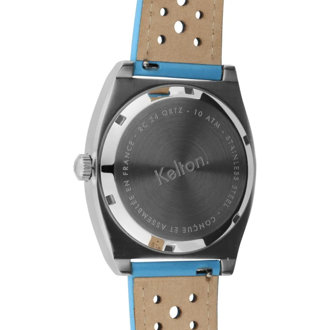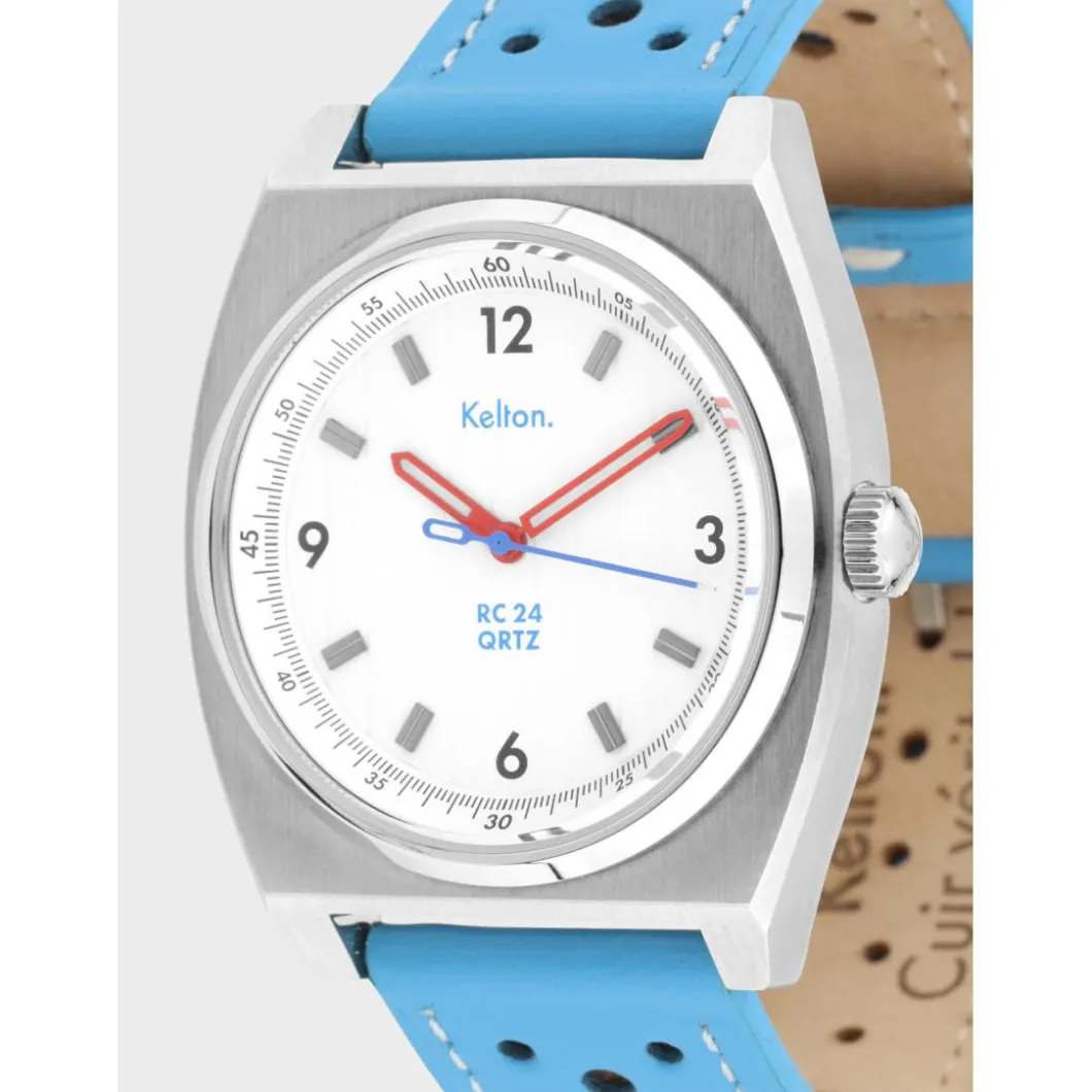 Découvrez la Montre Homme Kelton RC 24 QRTZ BLANC C – 9124862 signée Kelton. Cette montre de catégorie homme se distingue par son cadran rond en acier de couleur argentée orné de détails sophistiqués. Un contraste saisissant est créé avec son bracelet en cuir de couleur bleue. L’affichage analogique s’harmonise avec le diamètre du boitier, de 40 mm pour un résultat optimal. Cette pièce unique, alimentée à quartz, résiste à une étanchéité de 100 mètres. Elle est pourvue d’une fermeture à boucle simple, pratique pour un usage quotidien. Le verre en saphir protège le cadran, offrant une durabilité remarquable à cette montre.