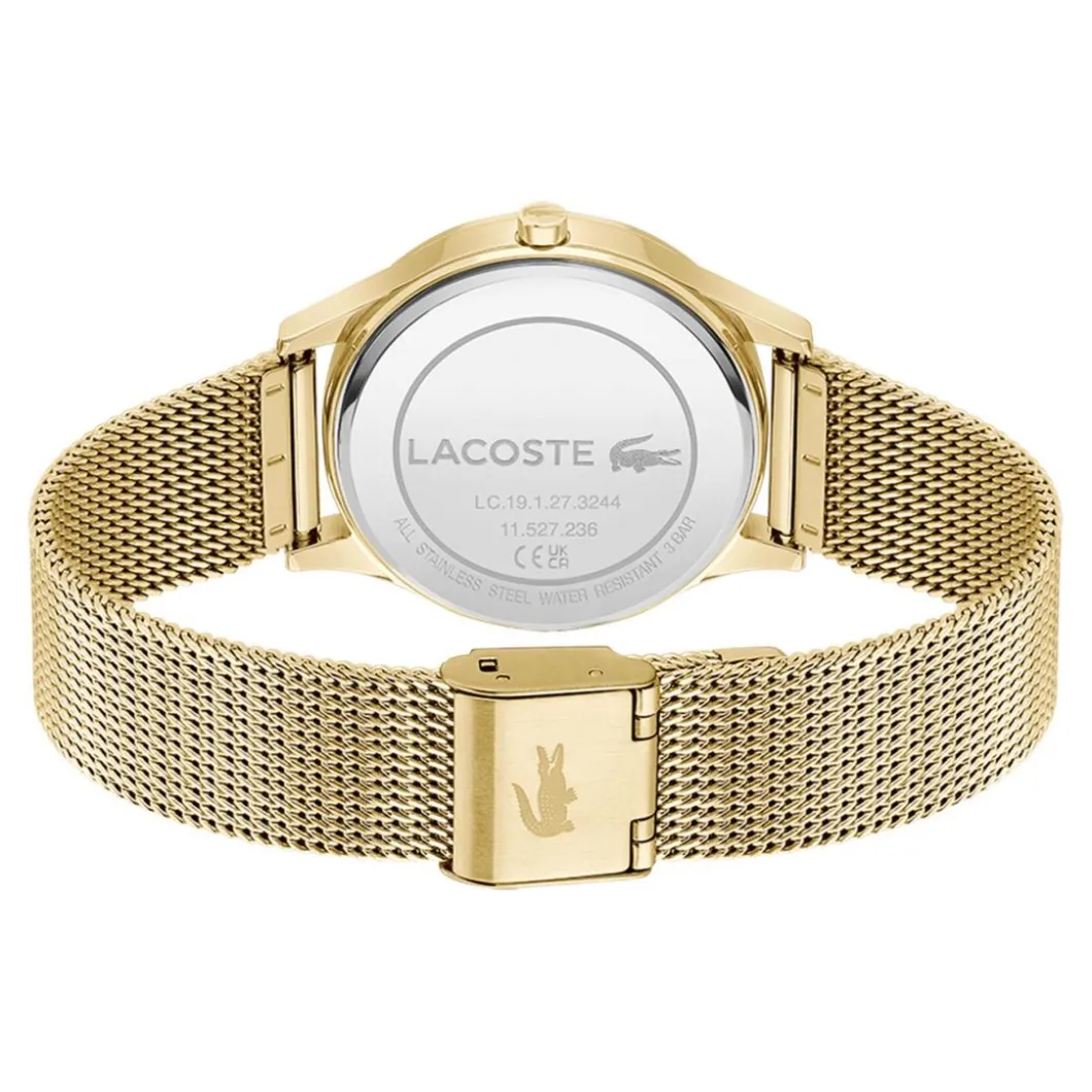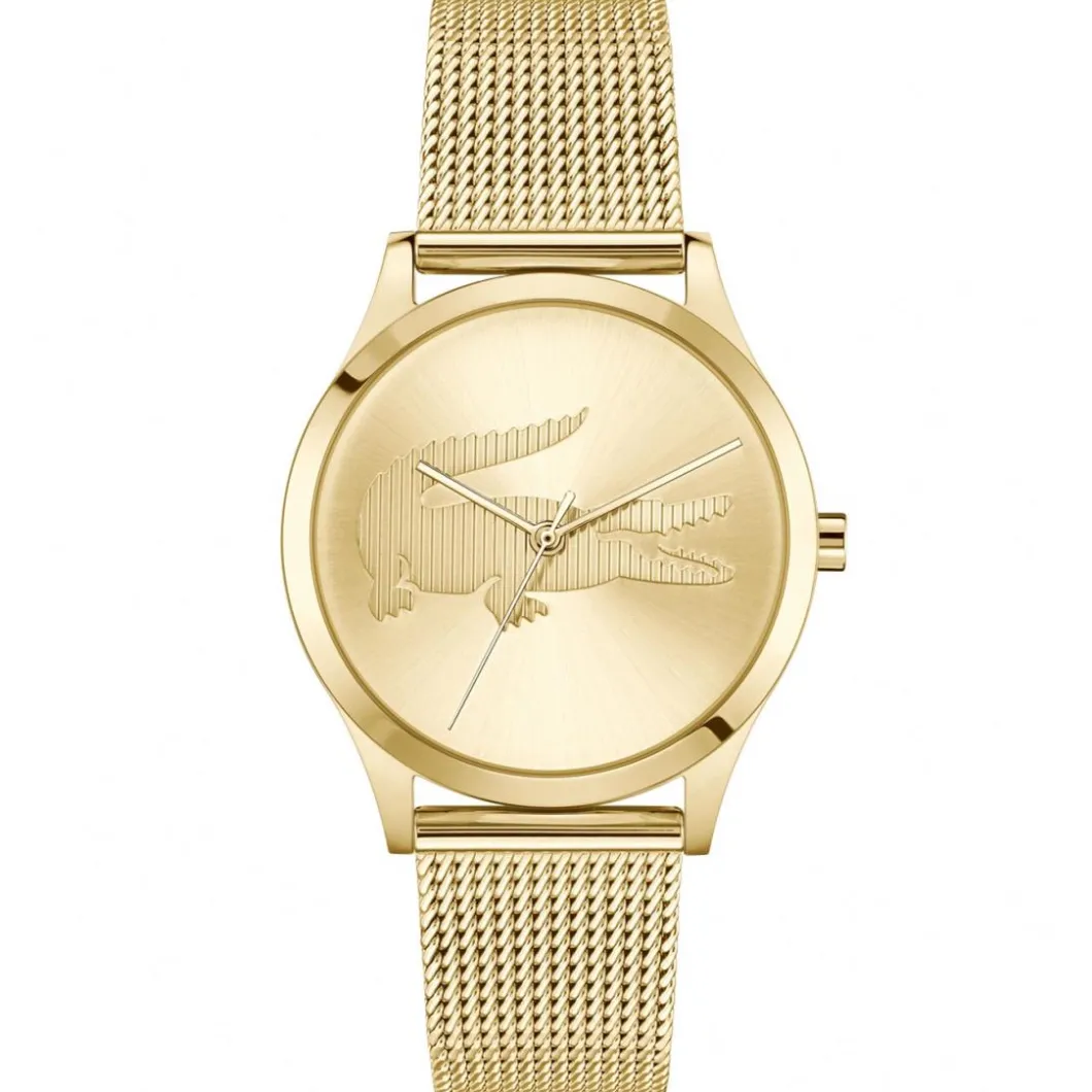 Découvrez la montre femme Lacoste Crocodelle – 2001416. Sublimée par son bracelet milanais en acier doré de grande qualité, cette montre laisse apparaître un boitier rond jaune d’un magnifique éclat. Son diamètre de 36 mm apporte une excellente lisibilité de l’heure. Fonctionnant de manière analogique, elle dispose d’un mouvement quartz précis et fiable. Grâce à son étanchéité à 50 m, elle est idéale pour les activités aquatiques de surface. Dotée du type de fermeture boucle déployante, elle offre un port confortable et sécurisé. Le verre minéral protège efficacement le cadran doré contre les rayures. Cette somptueuse montre donne une touche de raffinement à votre style tout en garantissant une longue durée de vie.