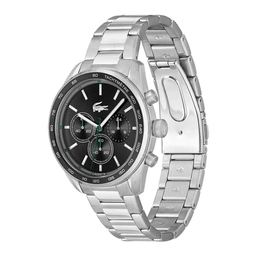 La Montre Homme Lacoste Boston – 2011347, un bijou de raffinement masculin, offre un boîtier en acier rond de 42mm de diamètre qui garde en sécurité un mouvement quartz. Étanche jusqu’à 50 m, elle dispose d’un affichage analogique et d’une fonction chronographe. Le bracelet argent est en acier aussi, procurant une continuité élégante avec son boîtier. Il se ferme grâce à une boucle déployante. Le verre minéral protège le cadran avec robustesse.