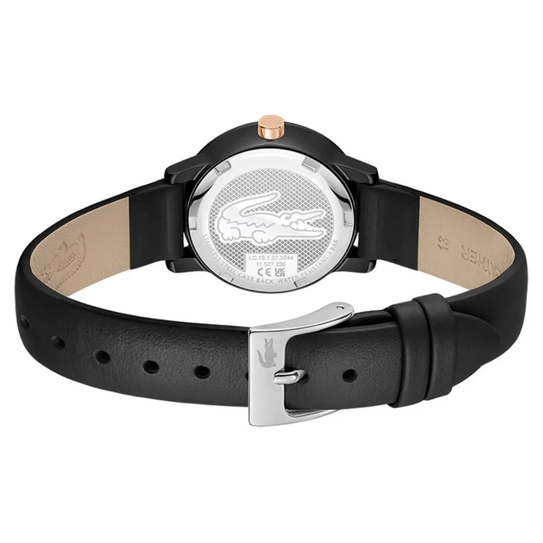 Cette Montre Femme Lacoste Lacoste.12.12 Swift – 2001436 met en avant son raffinement avec son bracelet en cuir noir. Affichage analogique avec un boîtier rond en aluminium de couleur argent qui réfléchit subtilement la lumière. Le diamètre du boîtier est de 28 mm, de taille idéale pour les poignets féminins. Elle possède une étanchéité de 30 m (3 ATM) qui lui permet de résister à l’humidité quotidienne. Le mouvement quartz garanti une précision exceptionnelle. Quant à la fermeture, elle se fait par une boucle simple et pratique. Le verre minéral protège le cadran des éventuelles rayures.