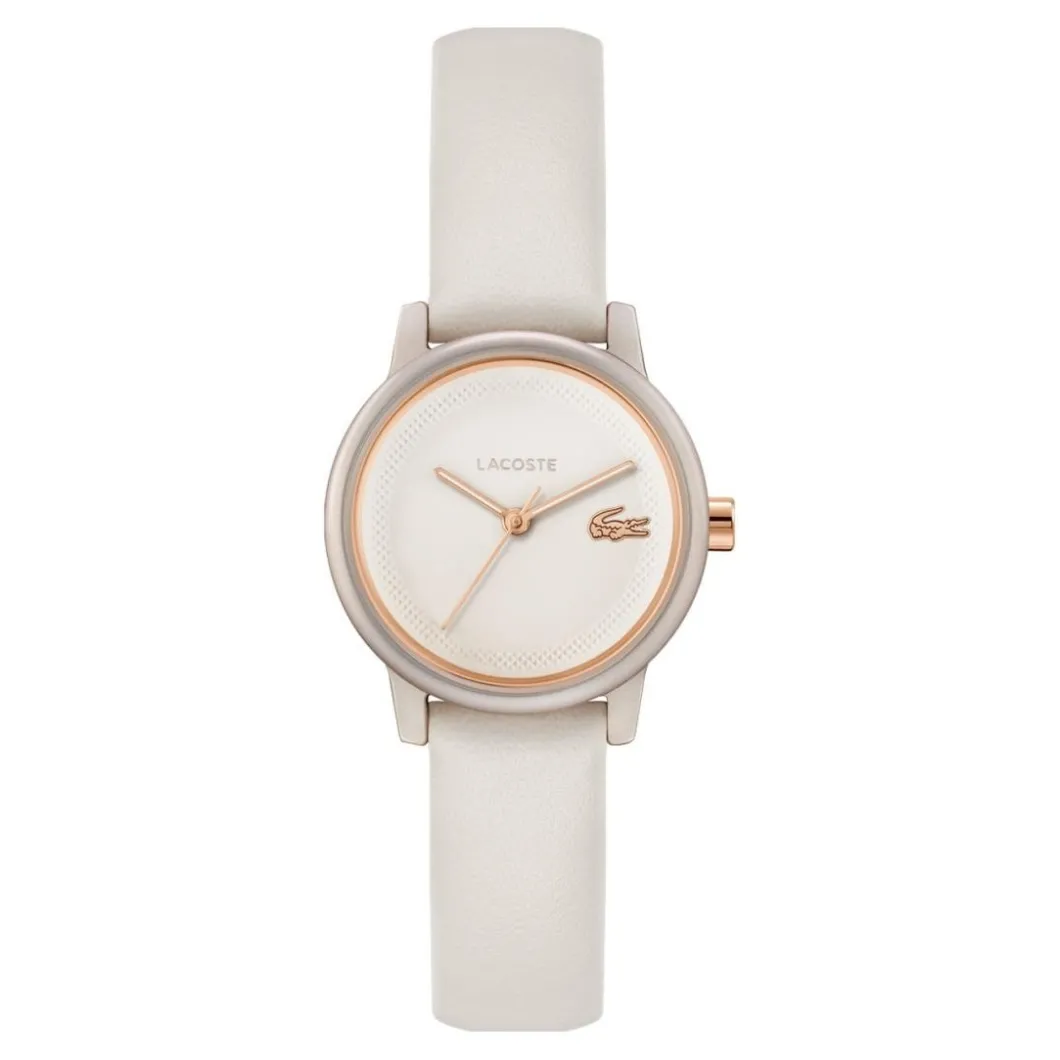 La montre femme Lacoste Lacoste.12.12 Swift – 2001437 affiche un affichage analogique avec un boitier argenté. Le bracelet en cuir blanc est confectionné avec une excellence qui illustre la qualité de la marque Lacoste. Le boîtier, rond et en aluminium, a un diamètre de 28 mm. Avec une résistance à l’eau allant jusqu’à 30m (3 ATM), ce bijou d’horlogerie convient à la femme moderne et active. Son mouvement fonctionne au quartz et est enveloppé dans un verre minéral pour une durabilité optimale. Cette montre se ferme par une boucle simple, rendant son ajustement aisé. Le cadran de la montre se distingue par sa simplicité et son élégance intemporelle.
