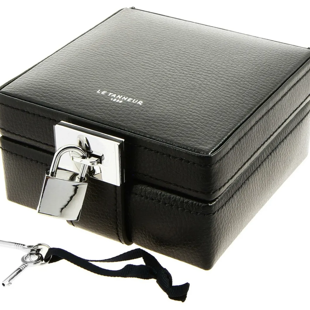 Un coffret à bijoux nomade Le Tanneur pour pouvoir emporter vos bijoux partout ! Ce coffret vous permettra d’y ranger vos essentiels mais également de voyager avec. Discret et élégant , ce coffret affirme son caractère privé et précieux grâce à son cadenas et ses clés munies.