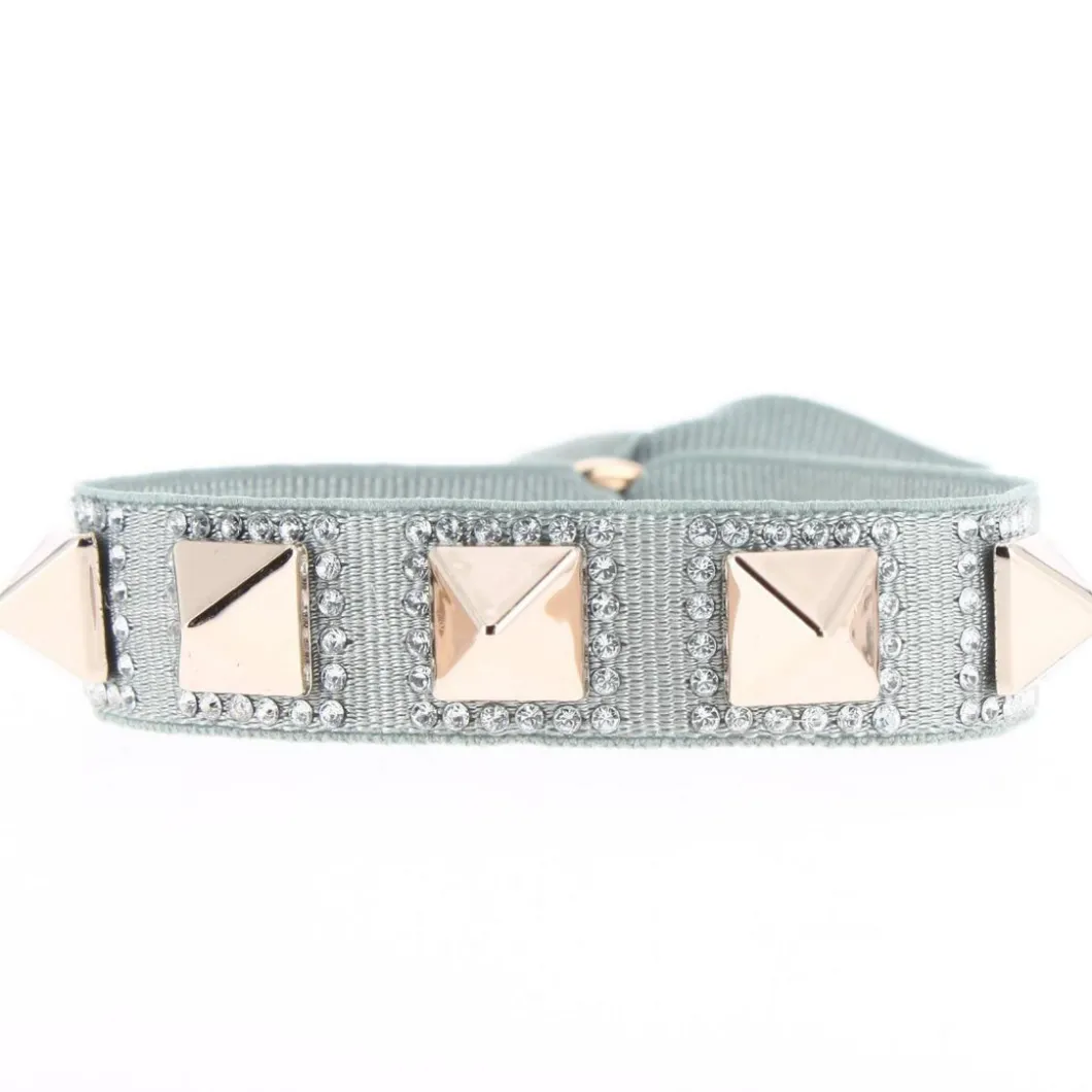 Changez de look avec ce Bracelet Les Interchangeables A32809 Femme. Avec ses pyramides rose doré entourées de pierres fines, il donne un petit côté rock chic à votre tenue. Son cordon en tissu dispose d’un fermoir à glissière pour faciliter son ajustement.