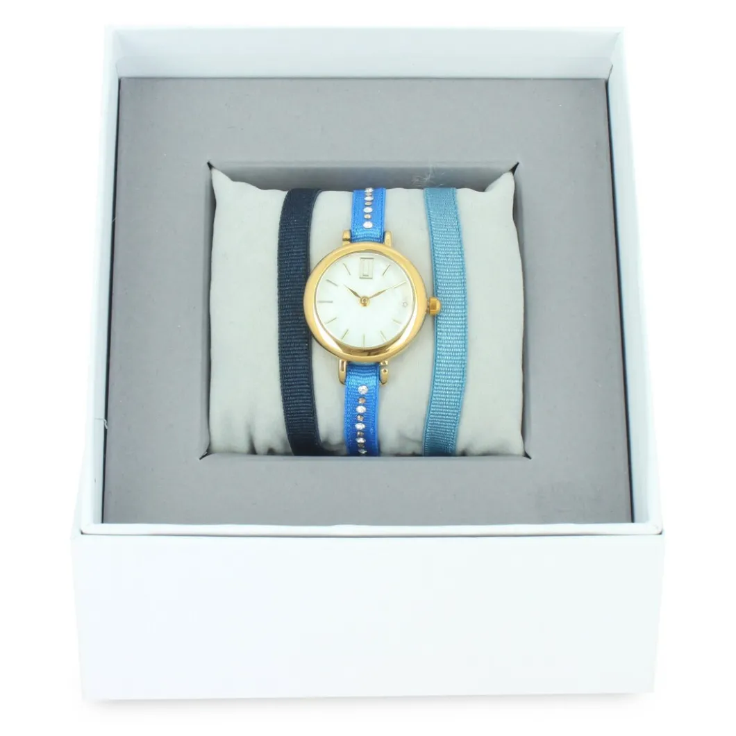 Coffret Les Interchangeables A57144 – Montre Ruban Boîtier Doré Jaune Femme