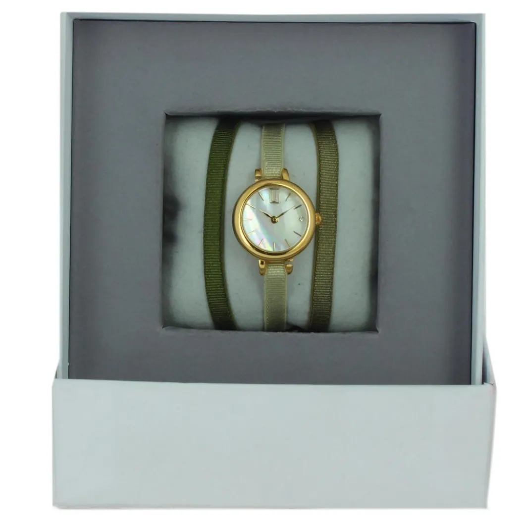 Montre femme Les Interchangeables Coffret Montre Ruban Satin Strech A56807 – Bracelet Tissu Vert Kaki