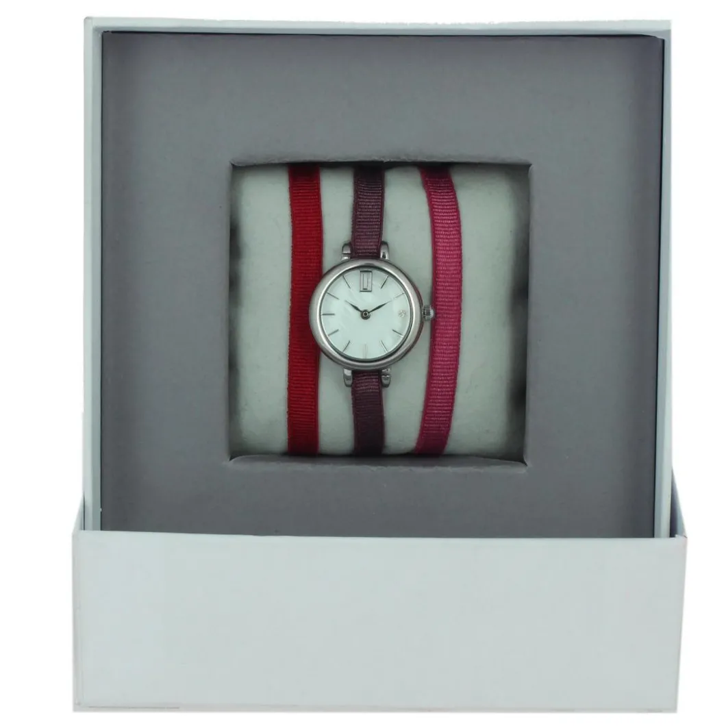 Montre femme Les Interchangeables Coffret Montre Ruban Satin Strech A56836 – Bracelet Tissu Rouge Bordeaux