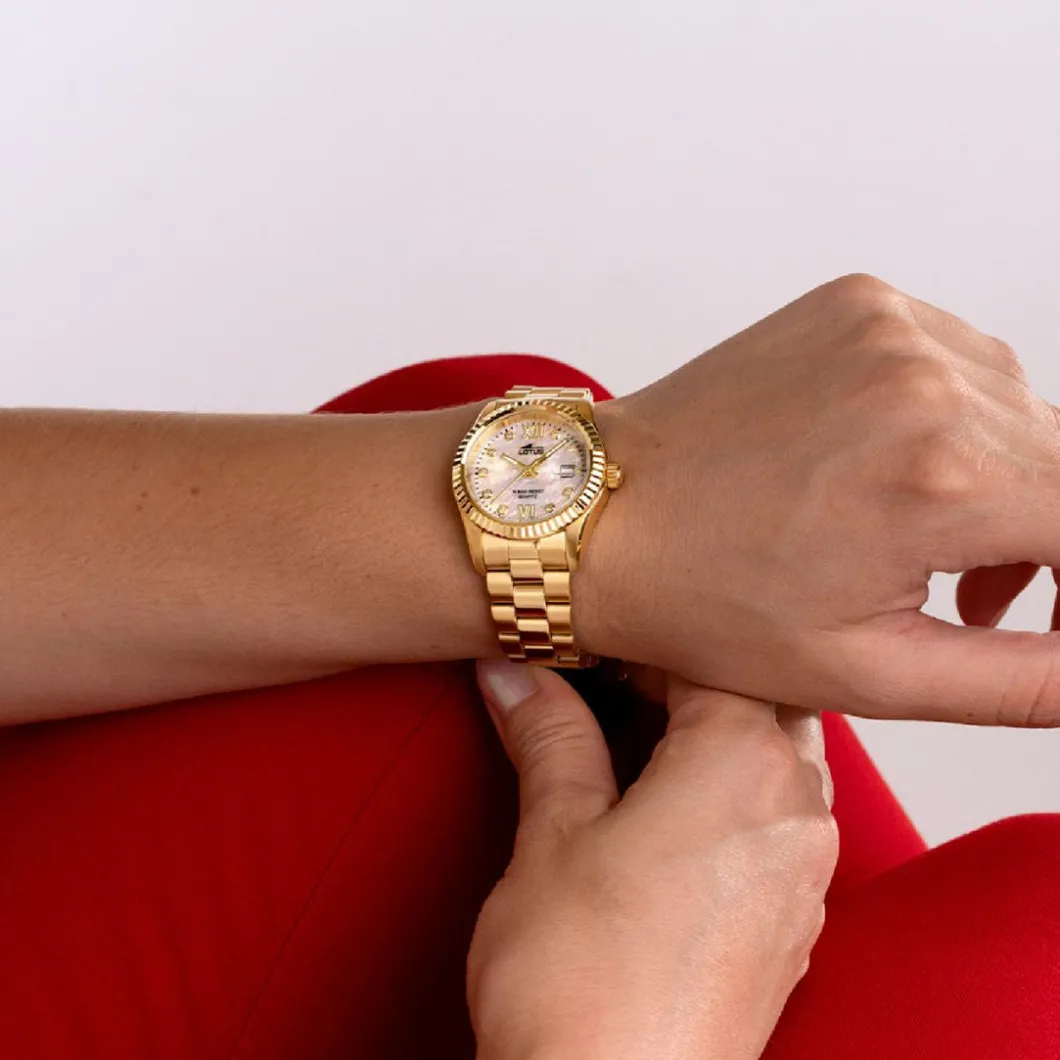 Cette élégante montre pour femme de la marque Lotus se distingue par son design moderne. Son boîtier de couleur doré, avec un diamètre de 33 mm, confère au modèle une apparence chic et sophistiquée. Le bracelet, d’une largeur de 17 mm, est bien proportionné et complète parfaitement le look. Cette montre est également dotée d’un dateur, fonctionnalité pratique pour les femmes actives. Un véritable bijou de précision et d’élégance.