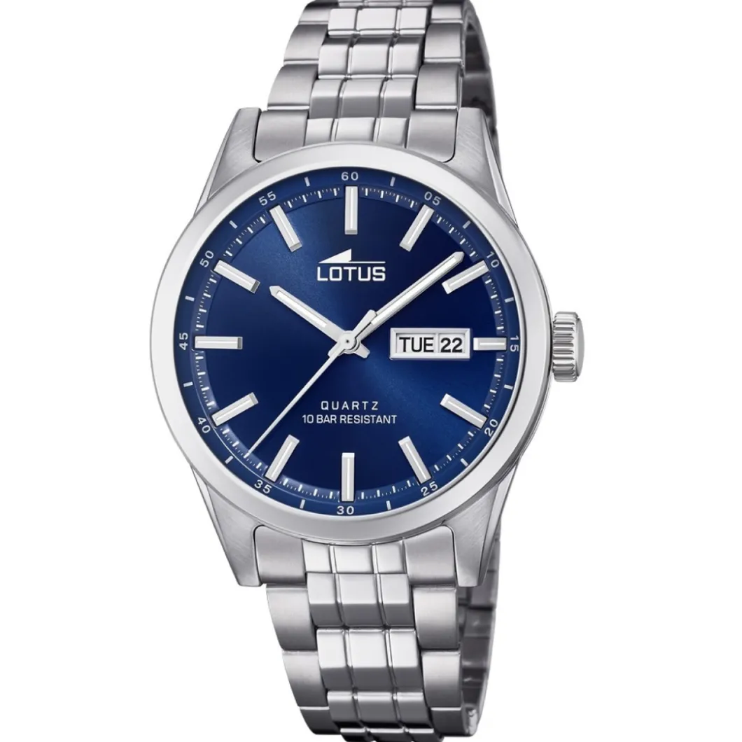 La Montre Lotus L18670-3 – Montre Acier CLASSIQUE Homme, une pièce indispensable au quotidien grâce à ses fonctionnalités et son design chic et moderne agrémente votre look. Elle dispose d’ propose un dateur et d’un affichage analogique à aiguille visuelle argentée posée sur un cadran de couleur bleue marine. Le tout rehaussé par ses bords et son bracelet à finition policée habille avec style votre poignet. Tout en acier inoxydable et disposant d’un mouvement quartz, elle s’adapte bien à un mode de vie rythmée.