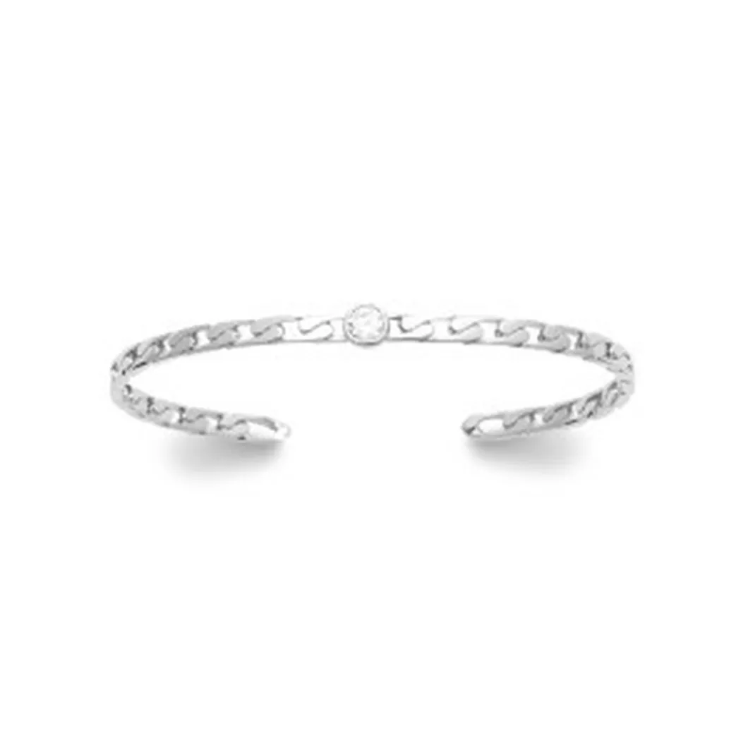 Bijou au design audacieux et mode, ce Jonc Femme VW34Z55V Maison de la Bijouterie fait actuellement sensation. Il se distingue par son anneau rigide en forme de maille et rehaussé d’un médaillon en zircon.