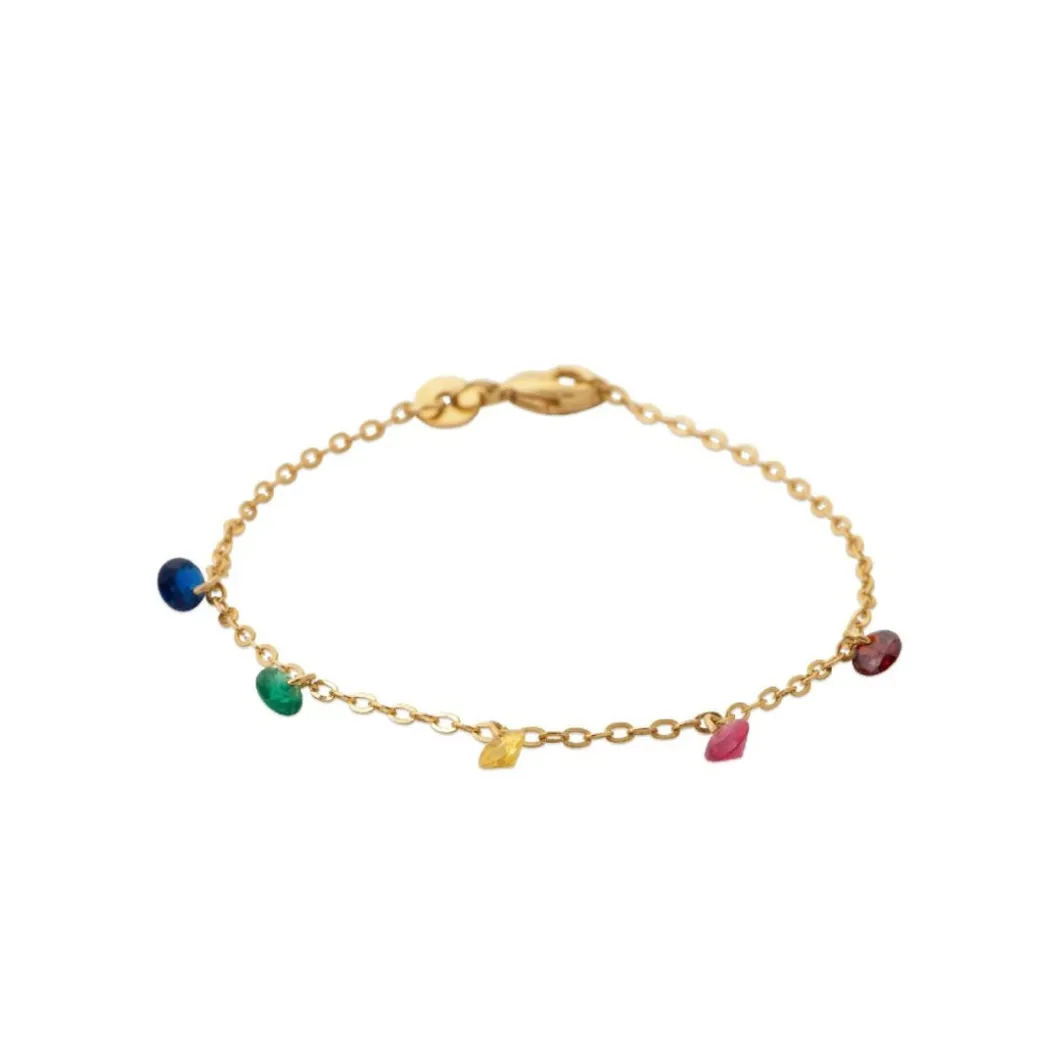 Au quotidien, restez élégante et tendance avec ce Bracelet Femme UW34V3ZV par Maison de la Bijouterie. Il émerveille par ses six pampilles en pierre semi-précieuses joliment alignées sur une chaînette plaquée or 750/1000.