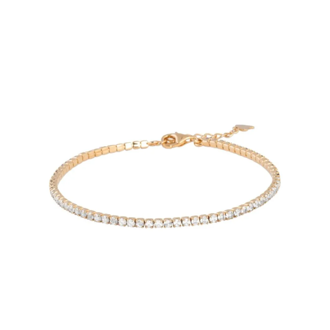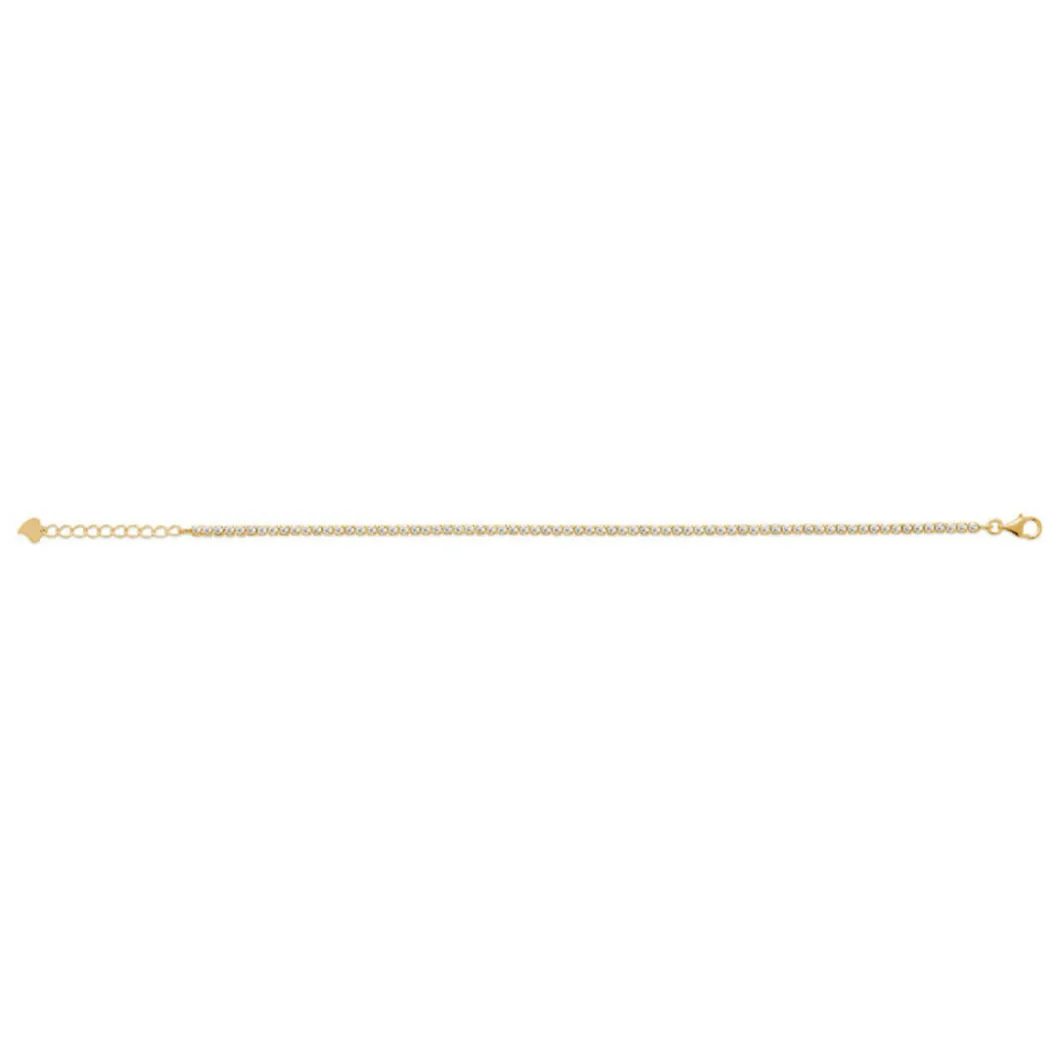 Craquez pour la silhouette moderne et raffinée de ce Bracelet Femme UW3YVYZV signée Maison de la Bijouterie. Il présente une rangée de zircons carrés blancs sertis dans une monture en laiton doré à l’or.