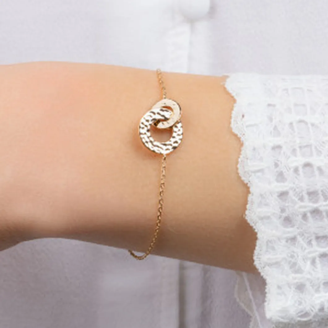 Ajoutez une touche mode et original à votre poignet grâce à ce Bracelet Femme UYZ63UZV par Maison de la Bijouterie. Il se distingue par ses deux anneaux entrelacés à finition martelés.