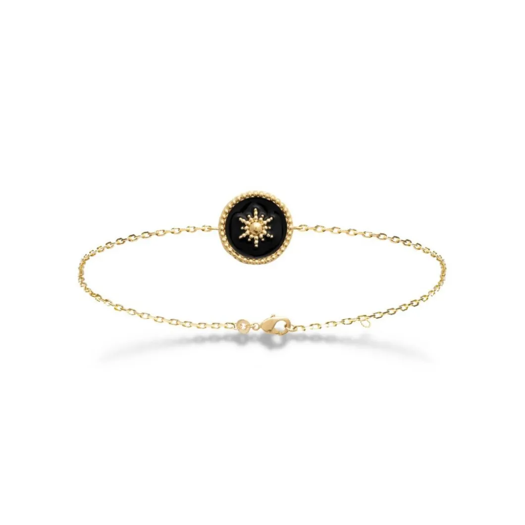Sublimez votre poignet avec l’élégance et la modernité de ce Bracelet Femme UYZ6W3ZV par Maison de la Bijouterie. Il se compose d’une fine chaine et d’une pastille ronde en émail noir. Un motif étoile doré surplombe le tout.