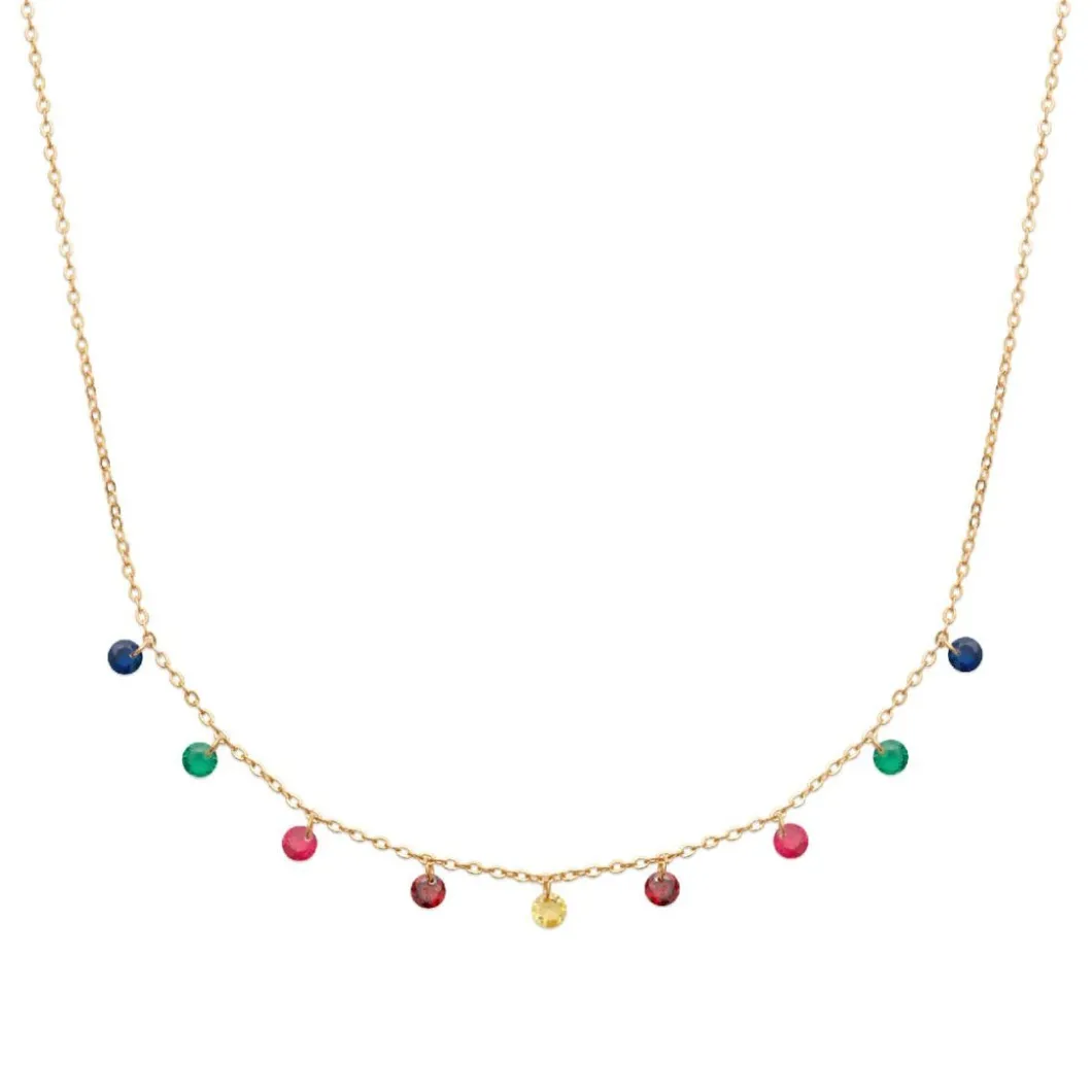 Pour un look tendance incomparable, craquez pour ce Collier et pendentif Femme UW34V345 de chez Maison de la Bijouterie. La fine chaînette plaquée or rassemble neuf pampilles de pierre semi-précieuses multicolores.