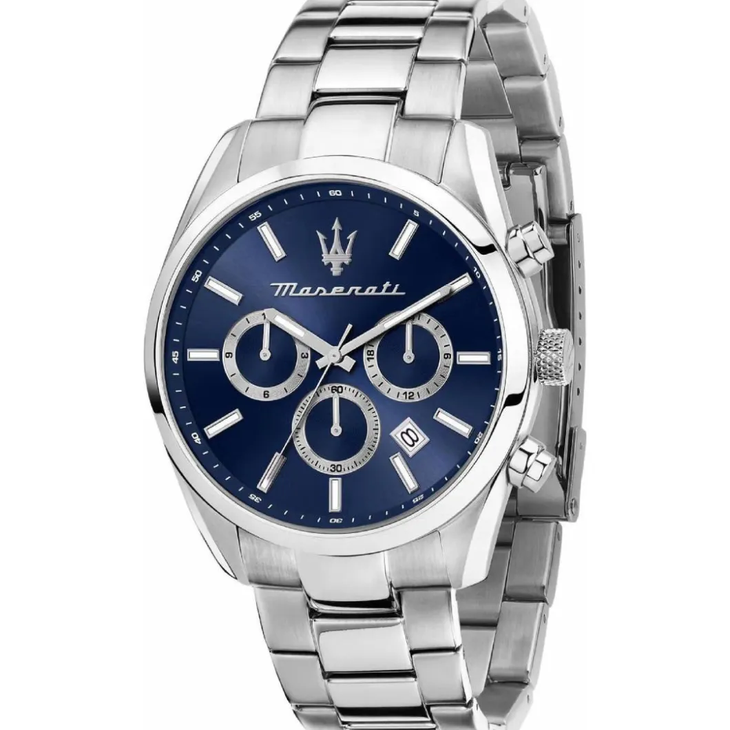 Cette Montre Homme Maserati Attrazione – R8853151005, en Couleur Argent, est un parfait choix pour la sophistication. Sa fonctionnalité multifonctions et son mouvement Quartz parlent d’excellence. Avec un diamètre de boîtier de 43 mm rond en acier, il s’attache avec une boucle déployante. La montre est étanche jusqu’à 5 ATM. L’affichage est analogique sur un verre minéral. La brillance du bracelet en acier complète parfaitement l’esthétique.