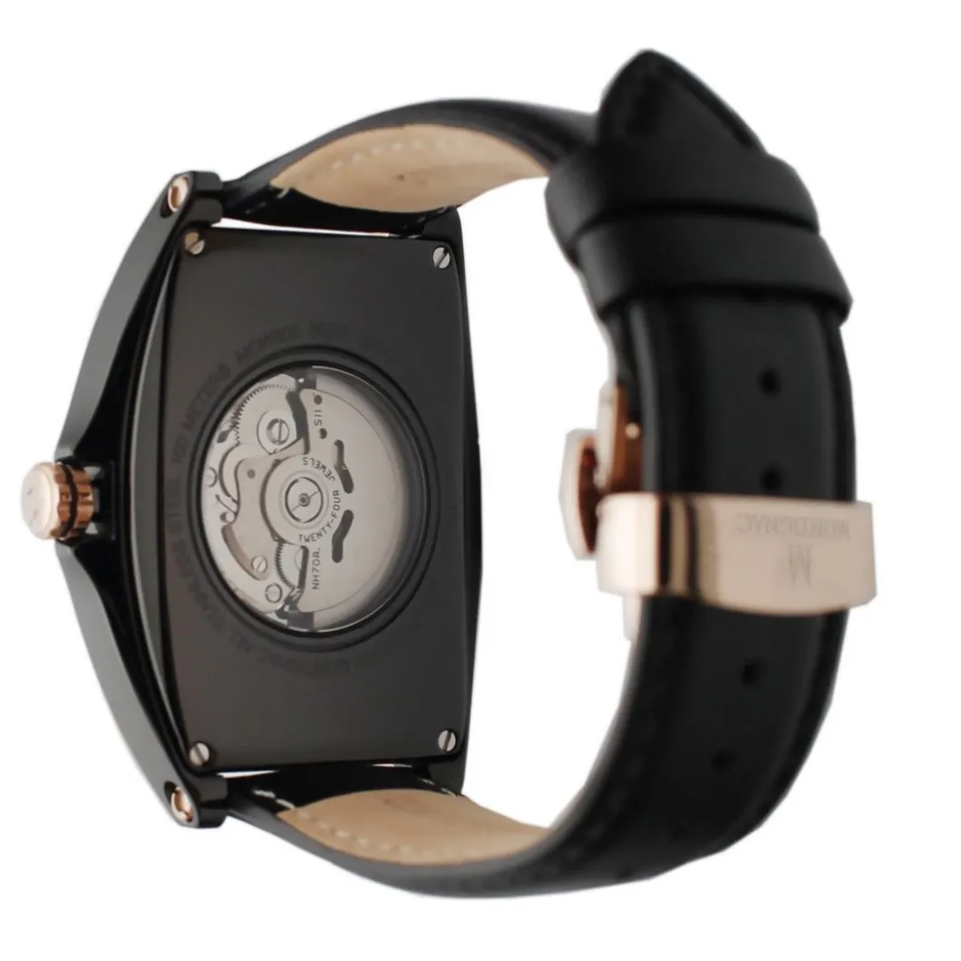 Autour de quatre formes puissantes qui puisent leur inspiration aussi bien dans les canons horlogers séculaires, que dans les marques d’avant-garde, Montignac offre une alchimie unique où l’automatique est maître. Un modèle automatique en 5 ou 10 ATM à couronne vissée à un prix aussi accessible est une opportunité pour le consommateur. La puissance du design s’exprime au travers d’une architecture moderne. Là, un cadran classique conjugue l’or rose au noir profond, créant une tension esthétique à nulle autre pareille. Ailleurs, le cadran s’efface pour dévoiler la technicité du mouvement automatique, dont chaque rouage peut être admiré dans ses moindres détails. Les tons de l’or rose se reflètent dans des dégradés de bleu, vert, noir ou gris. Au gré de compositions issues du bureau d’études de Montignac, chaque personnalité s’affirmera en fonction d’un style unique, où la quête de performance mécanique, s’alliant à un design puissant.