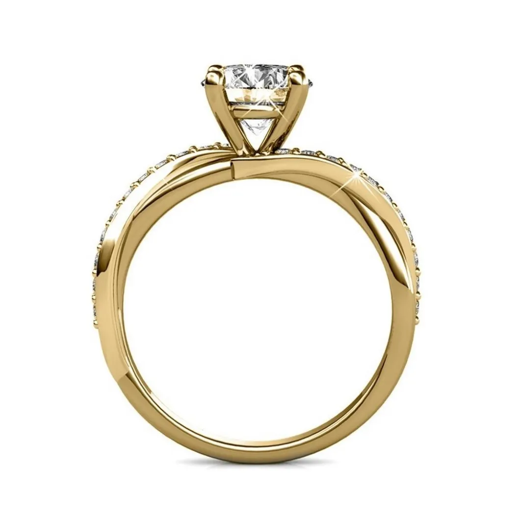 Choisissez cette Bague pour femme DR0026_G dorée pour habiller votre doigt. Elle possède une tête originale sertie de cristaux brillants et une teinte or tendance qui ajoute plus de raffinement à l’ensemble. Chic, elle se combine facilement à diverses tenues.
