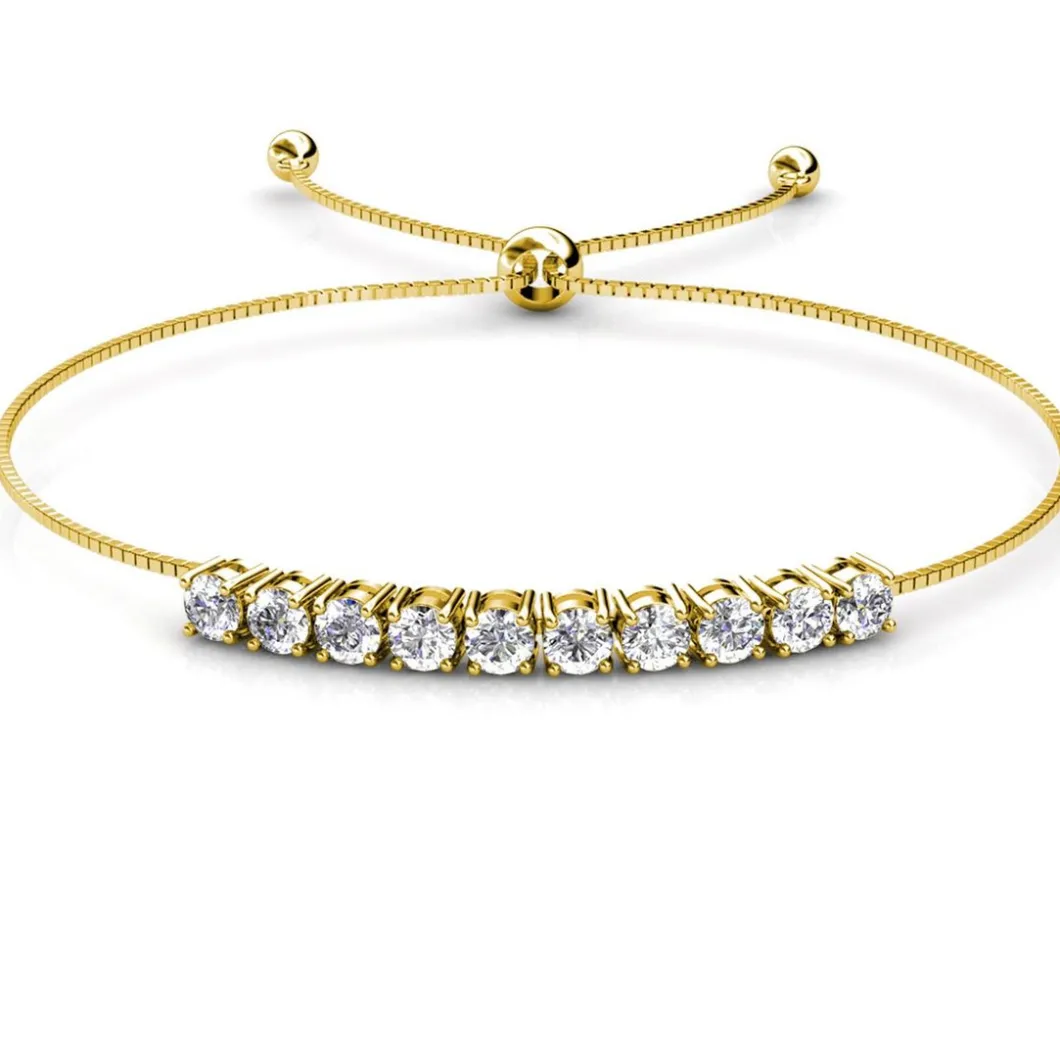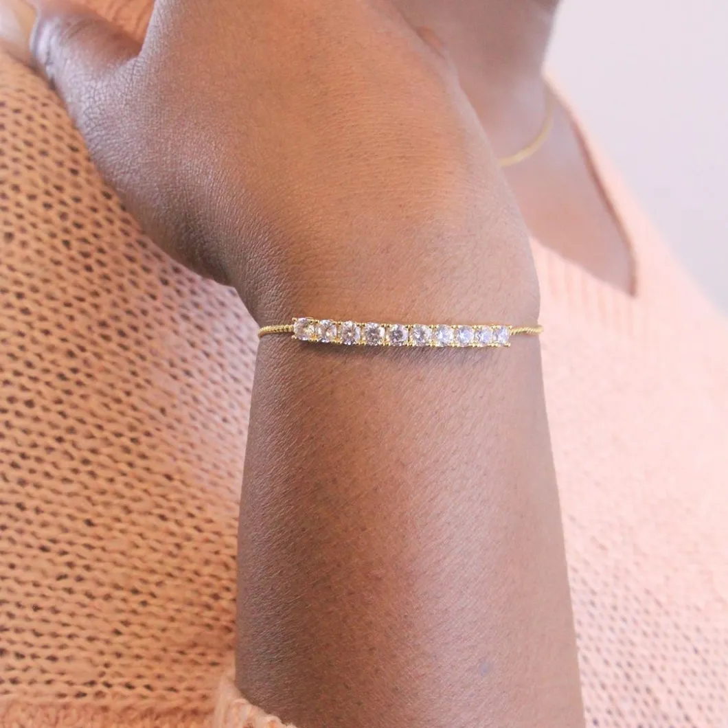 Ce Bracelet DB0147-G-AA MYC-Paris Solitaire se caractérise par la rangée de cristaux scintillants l’habillant et la praticité de son fermoir à boule coulissante.