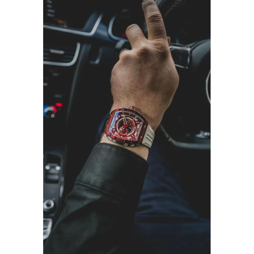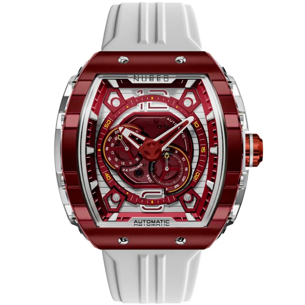 Embellissez votre poignet avec la montre pour homme Nubeo Magellan 24H Automatic – NB-6087-02. Habillée d’un bracelet en silicone blanc, cette montre apporte une touche de sophistication à votre tenue. Son superbe boîtier argenté en acier de forme tonneau est de 49 mm de diamètre. Le cadran, sous une protection minérale, affiche l’heure de manière analogique. Avec une étanchéité jusqu’à 50 mètres, elle vous accompagne même dans vos activités aquatiques. Le système de fermeture est une boucle simple pour un ajustement parfait. De plus, son mouvement automatique assure une précision optimale. La technologie utilisée dans cette pièce Nubeo est le reflet d’une grande tradition horlogère. Précise et élégante, elle est l’accessoire final, apportant une couleur blanche éclatante à votre style.