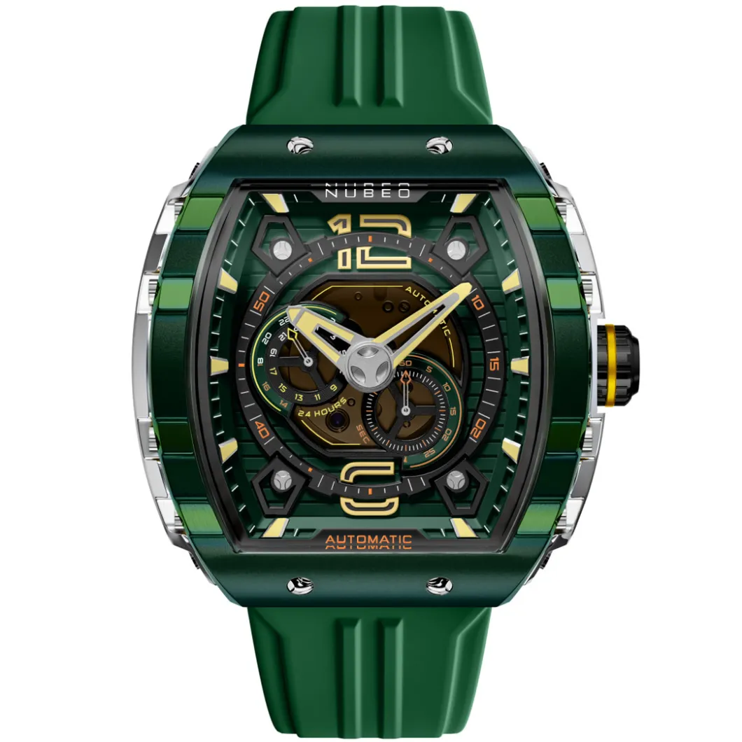 Cette Nubeo Montre Homme Magellan 24H Automatic – NB-6087-05 présente un style masculin et robuste. Dotée d’un boitier argent, elle dispose d’un affichage analogique clair, protégé par du verre minéral de qualité. Son cadran rectangulaire en acier, au diamètre de 49 mm, s’associe parfaitement à son bracelet vert en silicone résistant. Equipée d’un mouvement automatique, cette montre précise et fiable est étanche jusqu’à 50 mètres. Elle se ferme grâce à une boucle simple facile à manier. Sa couleur harmonieuse et son format tonneau offrent un équilibre entre élégance et fonctionnalité.