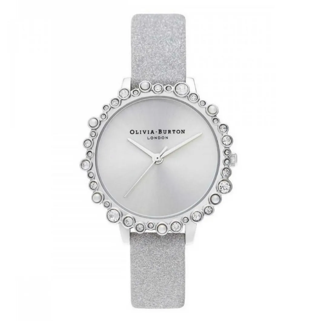 Le bracelet en cuir gris pailleté s’accorde au sublime cadran en acier argenté incrusté de multiples cristaux brillants sur son contour. Le tout s’accompagne d’un sobre cadran argenté qui vous assurera une tenue simple et chic.