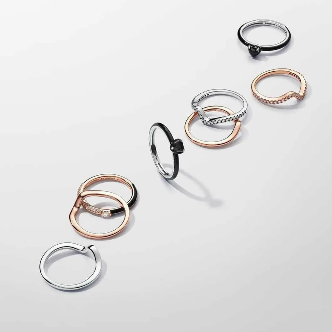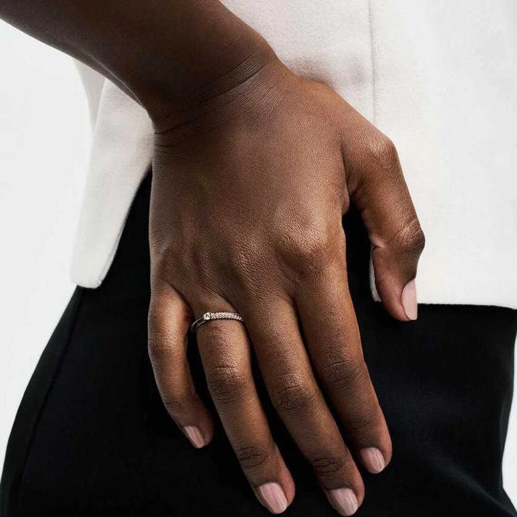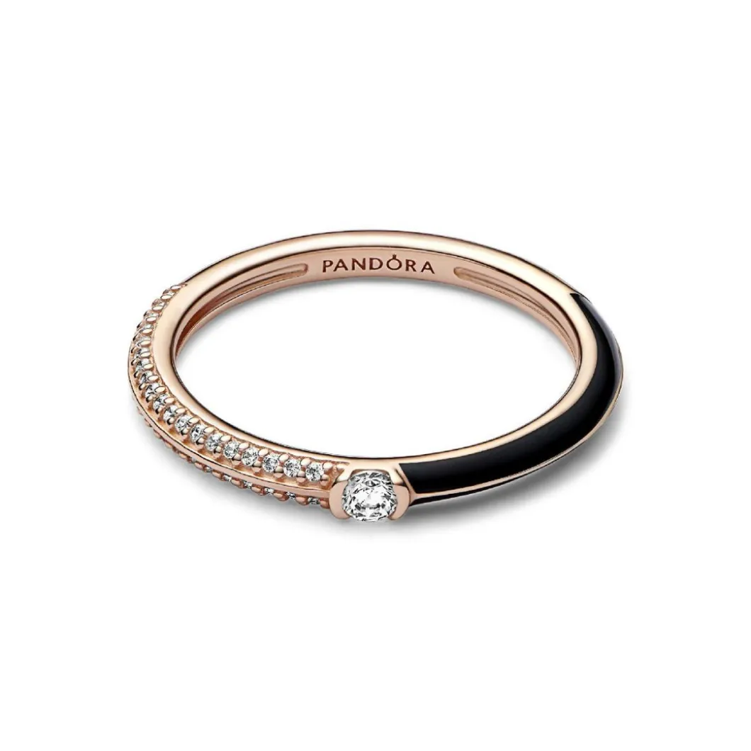 Laissez-vous surprendre par cette Bague Anneau Double Noir et Pavé – Pandora ME : un bijou moderne et sophistiqué qui vous accompagne au quotidien.