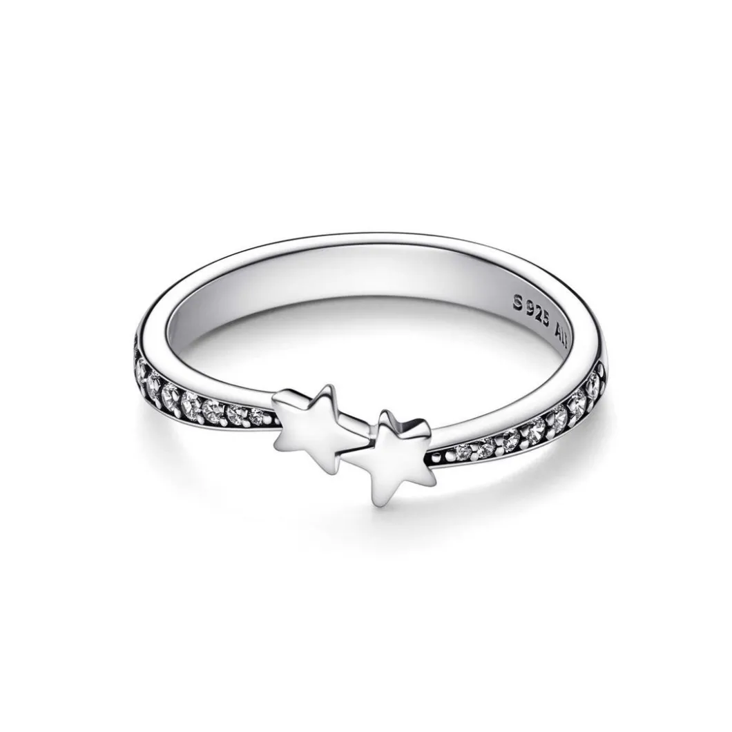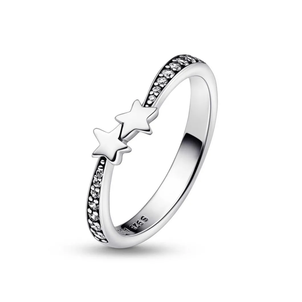 Étincelante et moderne, la Bague Pandora Moments– Étoiles Filantes Scintillantes sublime le doigt d’un éclat merveilleux.