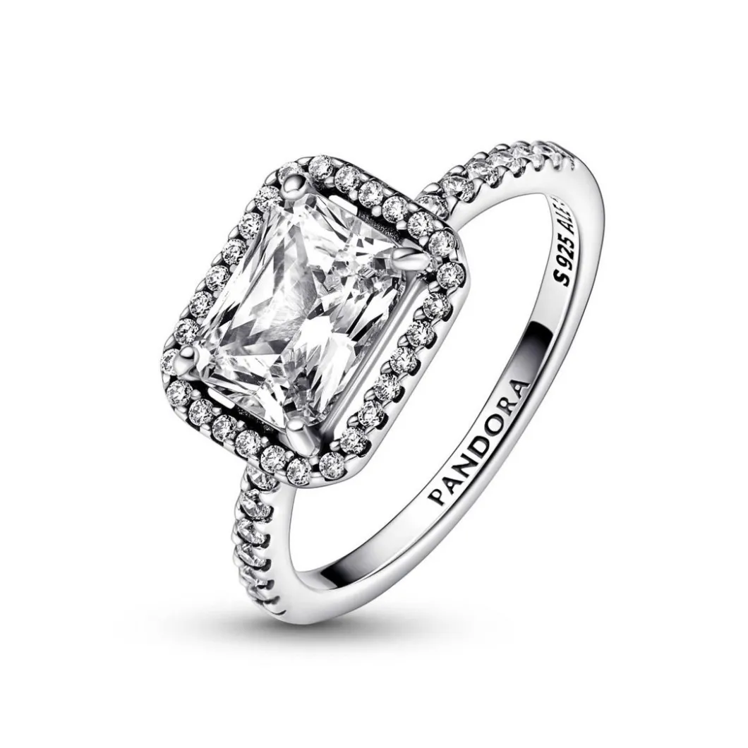 Portée en accumulation ou en bague de cocktail, la Bague Pandora Timeless – Halo Rectangulaire Scintillant sublime les gestes avec élégance et sophistication.