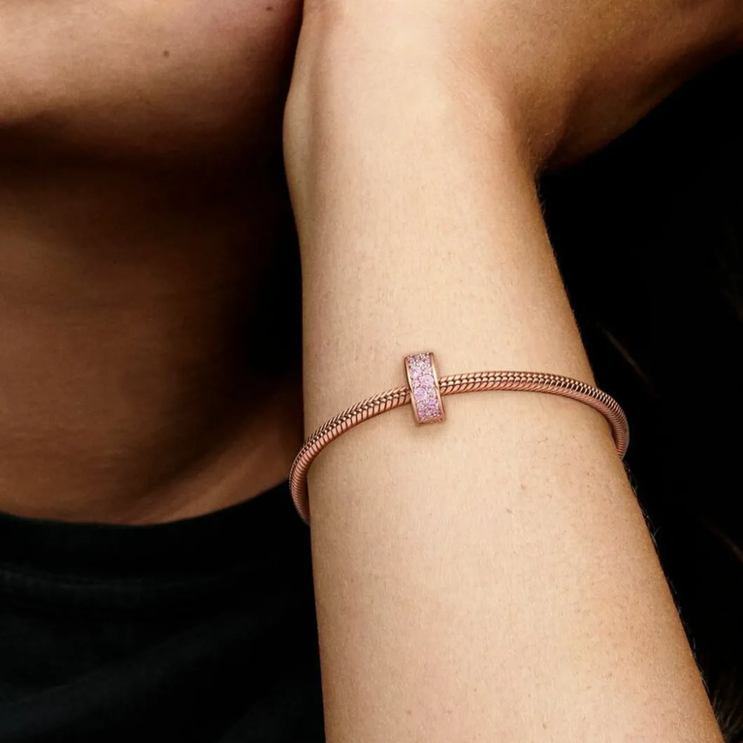 Ce nouveau Charm Pandora 781817PCZ est serti d’oxydes de zirconium roses étincelants. Élégant, ce clip se mariera à la perfection avec vos charms et apportera sa touche féminine !