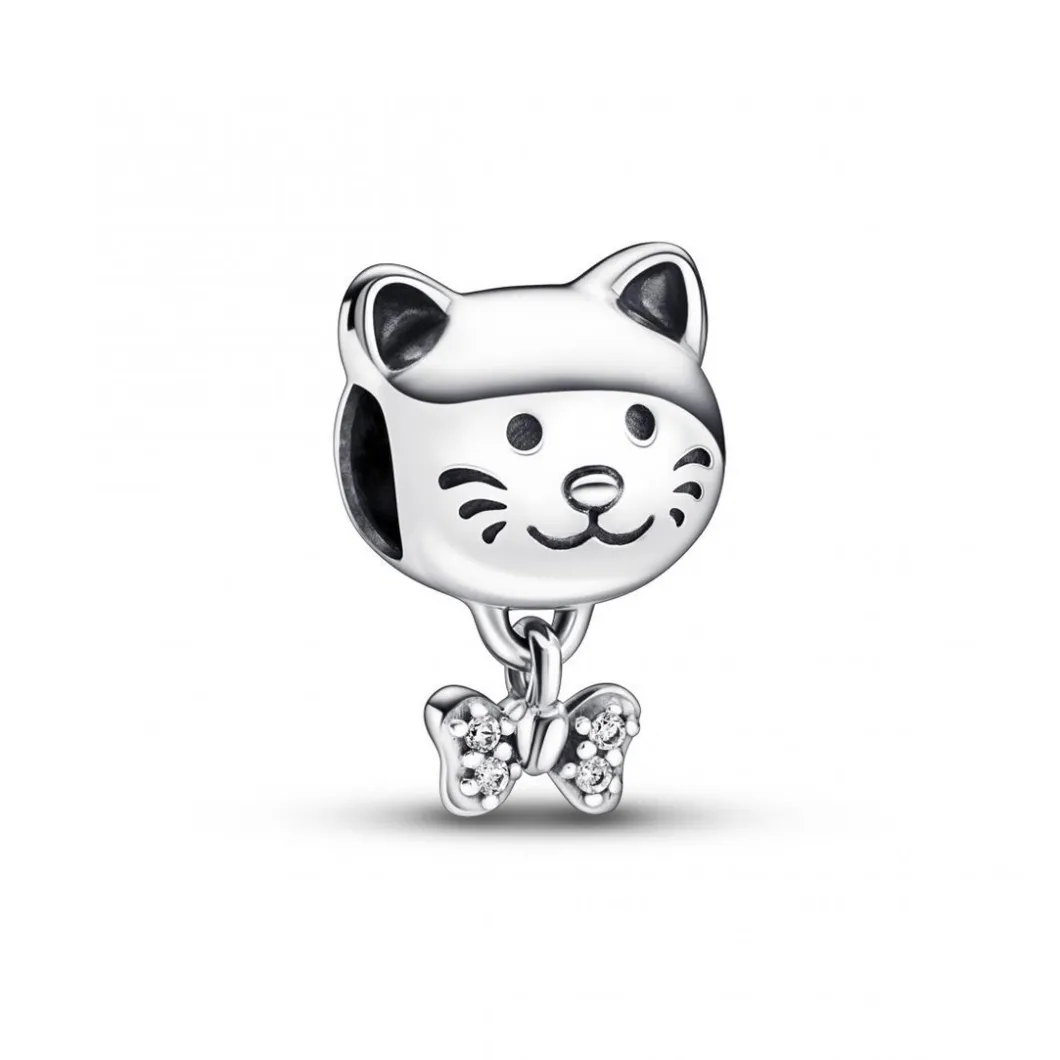 Pour embellir votre bracelet, misez sur ce Charm argenté chat et nœud scintillant. Cet accessoire de mode signé Pandora fascine avec son design aux détails très raffiné et son petit nœud orné de pierres fines qui donne du caractère à l’ensemble. Stylé, il peut aussi bien être porté seul que superposer avec d’autres charms.