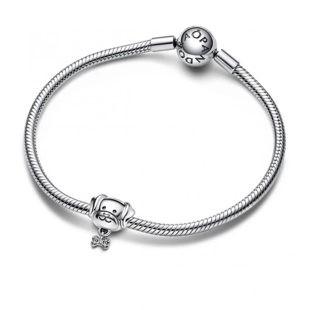 Personnalisez votre bracelet en y accrochant ce Charm Argenté Chien et Os. Simple et tendance, il attire les regards avec son design unique en forme de chien sur lequel est accroché un petit pendant en forme d’os. Ce dernier est orné de pierres fines pour apporter une touche de raffinement à l’ensemble.