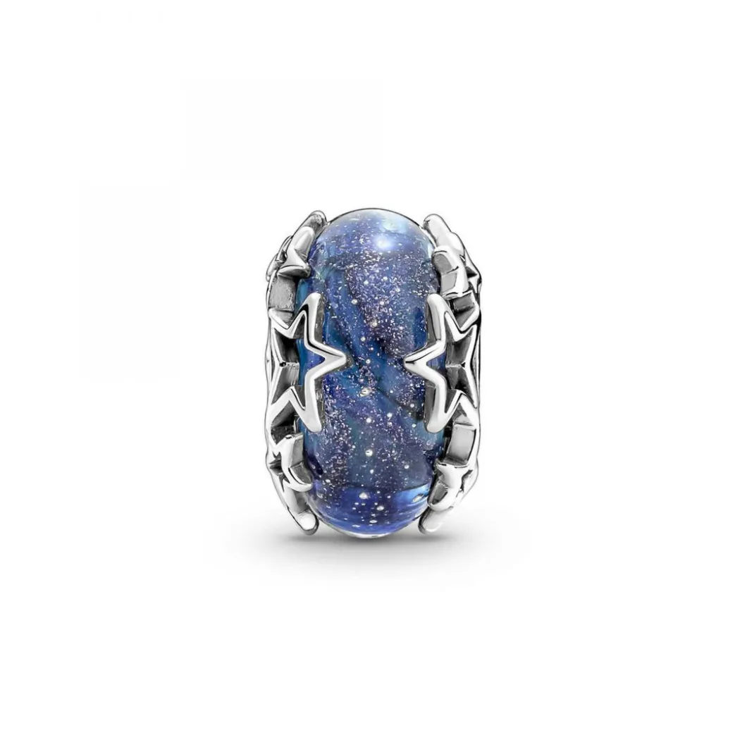 Caractéristiques Charm en Verre de Murano Bleu Galaxie & Étoile Pandora Moments – Argent