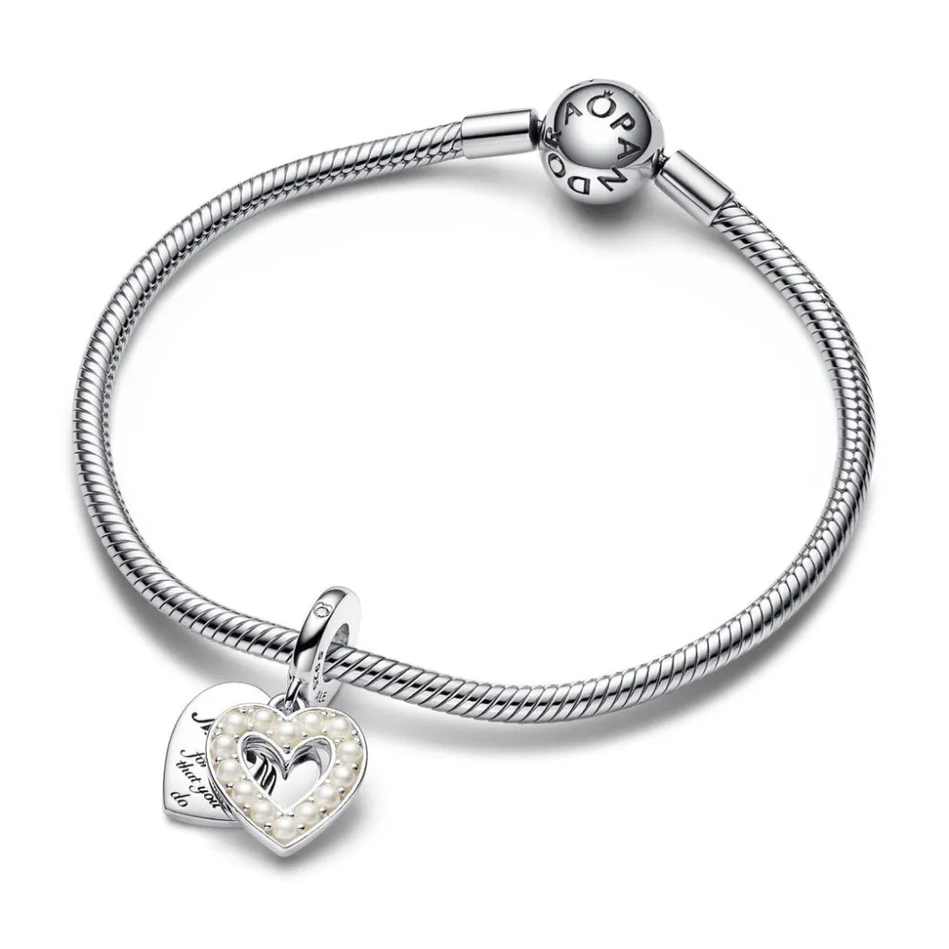 Caractéristiques Charm Pendant Double Cœur Blanc Nacré – Pandora Moments