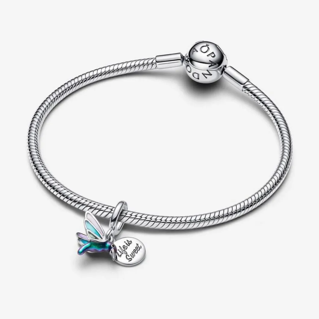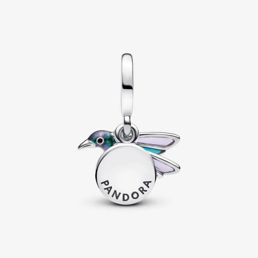 Le Pandora Charm Pendant Double Colibri transporte avec élégance le monde naturel dans l’univers du bijou. Exclusivement destiné aux femmes, ce charm appartient à la collection Pandora Moments. Fabriqué en précieux argent 925/1000, il présente deux colibris en vol, délicatement ornés de pierres en émail. La couleur verte des détails sur les oiseaux apporte une touche de fraîcheur et de vivacité. Ce pendentif est non seulement charmant, mais également raffiné et gracile, à l’image du colibri qu’il représente. Parfait pour enrichir une collection de charms ou pour offrir en cadeau. Il symbolise la légèreté, la rapidité et la beauté de la nature.
