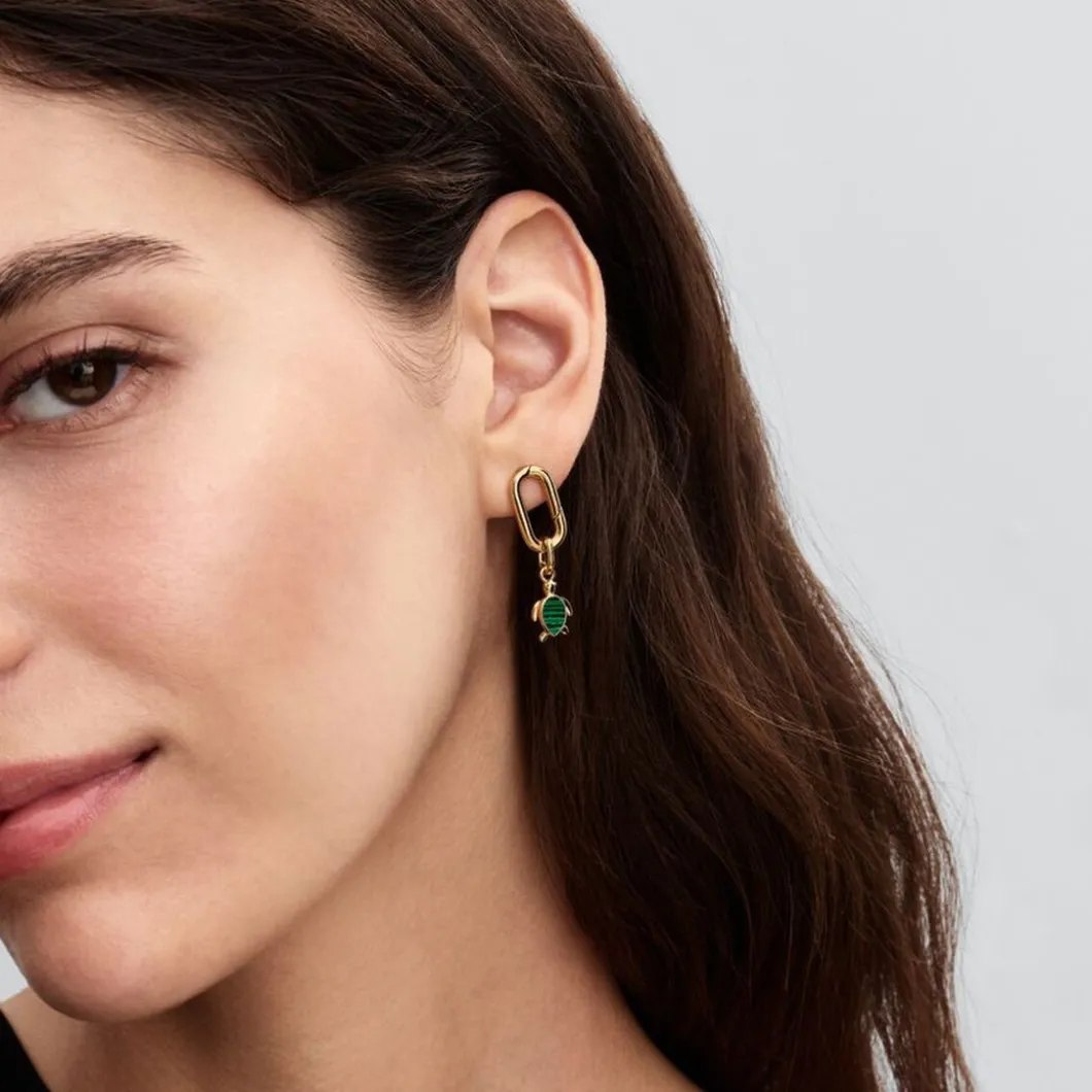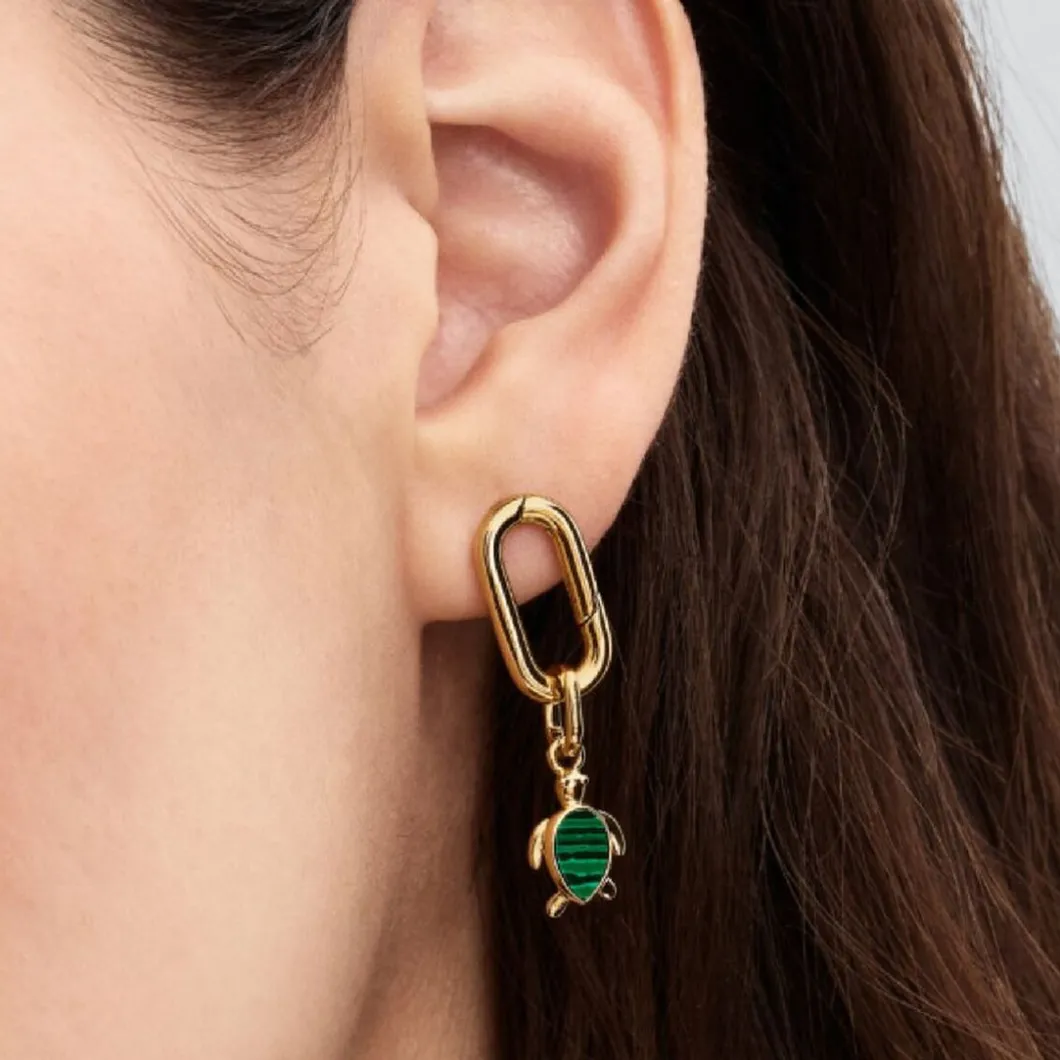 Ce Pandora Mini Dangle Tortue Verte 763823C01 appartient à la catégorie Charms et perles. Il fait partie de la collection Pandora Me, spécialement conçue pour les femmes. Sa couleur Verte évoque la nature et la tranquillité. La matière utilisée est un métal précieux doré à l’or fin 585/1000, lui conférant une brillance et une élégance sans pareil. Un détail qui le distingue est son design unique de petite tortue, ajoutant une touche de grâce et de finesse. Elle est enchâssée d’une pierre de malachite, qui reste la pièce maîtresse de ce bijou, rendant chaque pièce unique. Cette tortue verte est un charm élégant et sophistiqué, idéal pour ajouter une touche personnelle à votre collection de bijoux.