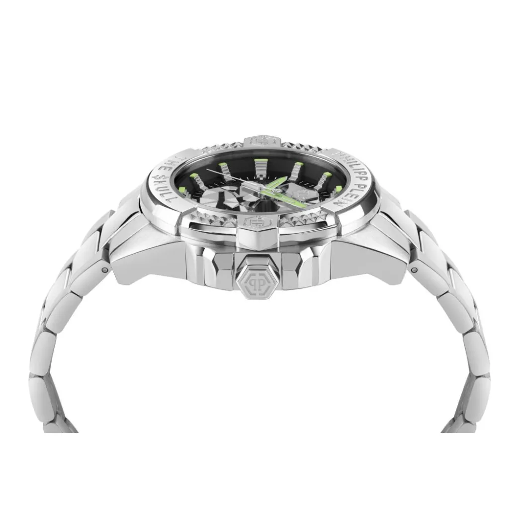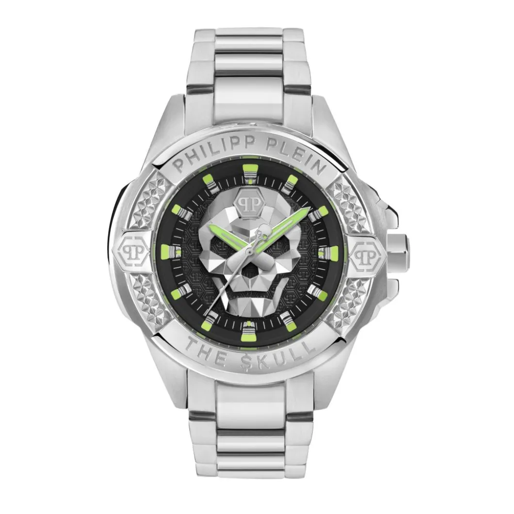 Le séduisant et robuste modèle de montre pour homme Philipp Plein The $Kull – PWAAA2725 est une parfaite représentation de l’élégance masculine. Constitué d’un boîtier rond en acier de couleur argent, cette pièce horlogère de forme ronde reflète avec noblesse la lumière. Son bracelet en acier avec une fermeture par boucle déployante ajoute à l’aspect imposant de la montre. L’affichage analogique sur un cadran noir met en évidence un design de crâne distinctif, un symbole signature de la marque Philipp Plein. Cette montre est dotée d’une étanchéité jusqu’à 50 mètres, un mouvement à quartz et un verre minéral résistant. Une montre à la fois élégante et résistante, idéale pour l’homme moderne.