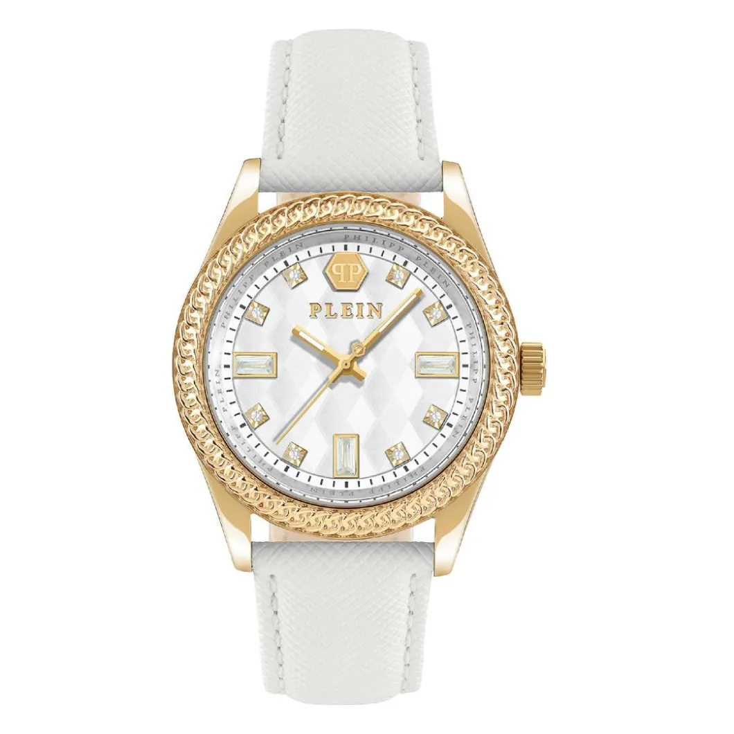 D’une élégance incomparable, cette montre Philipp Plein Queen est une affirmation de style incontestable. Le cadran rond doré de 38mm, fabriqué en acier de qualité supérieure, abrite un affichage analogique avec un mouvement à quartz. Le bracelet en cuir blanc complète merveilleusement bien le boîtier doré, apportant une touche raffinée à cette pièce. Avec une simple boucle pour fermeture, elle est facile à porter et à enlever. Une étanchéité au standard de 5ATM (50m) offre une protection suffisante contre l’eau. Enfin, le verre minéral du cadran garantit une excellente résistance aux rayures. Un accessoire à la fois chic et fonctionnel pour la femme moderne.